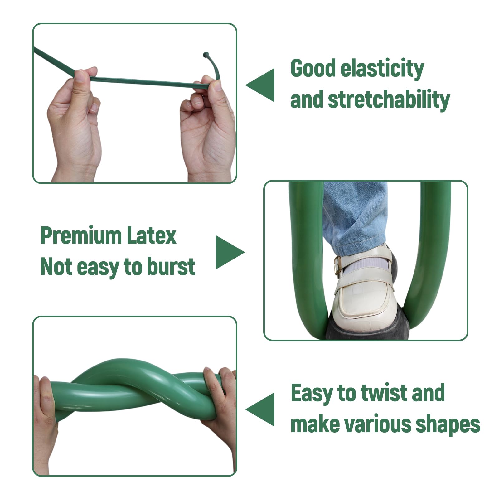 Long sage green balloons are made of natural latex, thick and durable, strong elasticity and easy to twist. It is your first choice for making animal balloons. 100pcs sage greenSkinny Balloons animal kit.