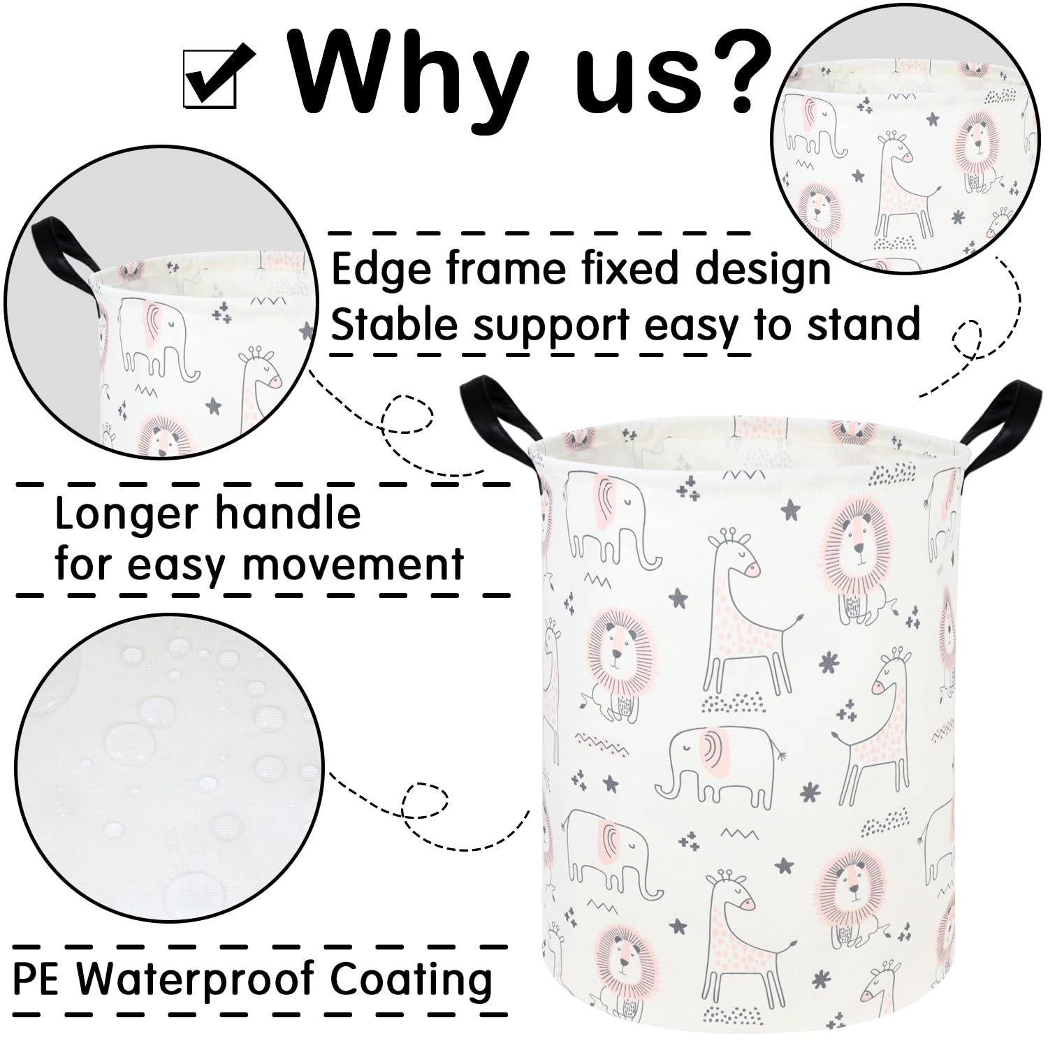 ❀{Advantages and features}: 1.Cartoon patterns are very cute, interesting and attractive, which helps the kids develop a good habit of storage. Put it in the nursery, dormitory,living room,bedroom and shower. 2. The laundry basket has a large capacity. Clothes, bedding and toys in four seasons can be stored. It occupies a small space and can be used effectively save space. 3. Each handle strong bearing capacity. It can be folded when not needed, which is convenient for storage and saves space.