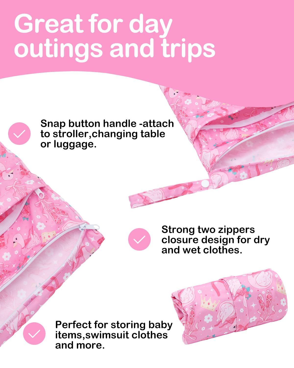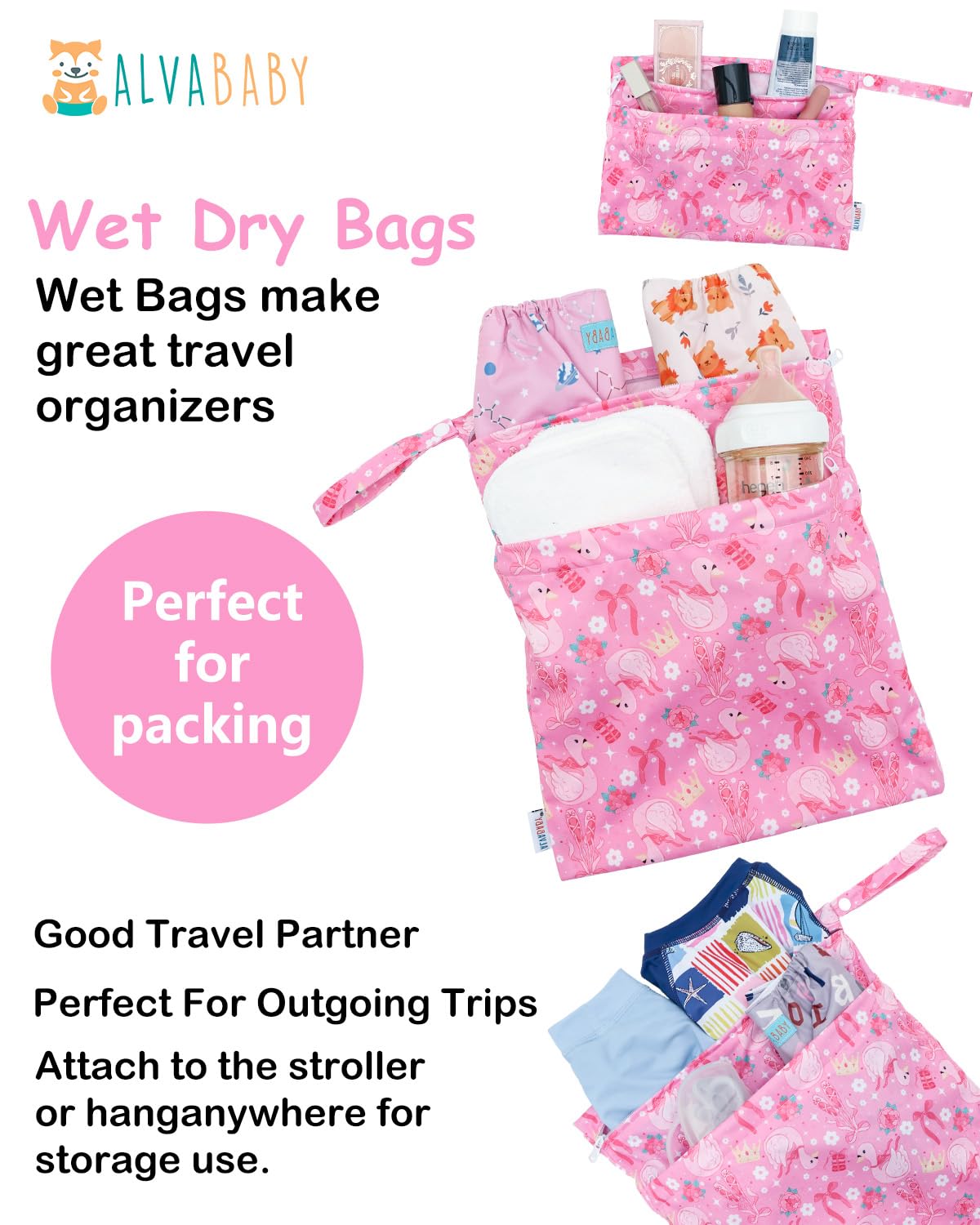 Fashion , Reusable&Waterproof , High quality -A trim and attractive design. ALVABABY wet/dry bag are made from waterproof 100% polyester, put dirty cloth diapers in a wet bag. Comes with handle for easy carrying or attaching to your diaper bag or stroller.