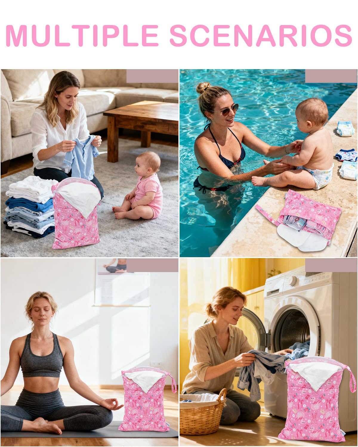 Multi-functional Bags-A truly wonderful bag that allows you to carry your wet and dry items in the same bag. Carry all your items in one bag while keeping your dry items dry and your wet or soiled items separate. Truly an all in one bag! They can be used as diaper wet dry bags,travel bags,storage bags,cosmetic bags,handbags,wash bag,organizer bags.