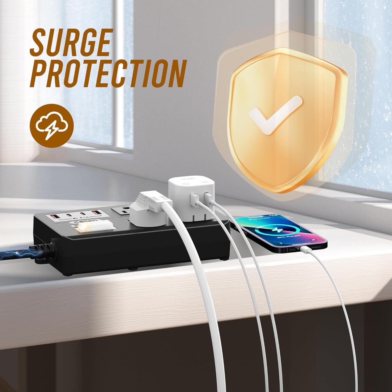 Advanced Surge & Safety Protection - UL/ETL listed with 400J surge, overload/short-circuit safeguards, child safety locks, and flame-retardant ABS+PC up to 1382°F.