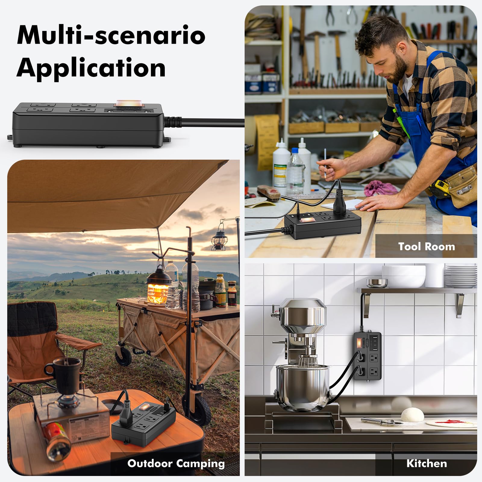 IPX6 Waterproof for Heavy Rain Resistance - Sealed outlets and drainage holes protect against splashes and water flow; ideal for outdoor lights, tools, or decorations in wet conditions.