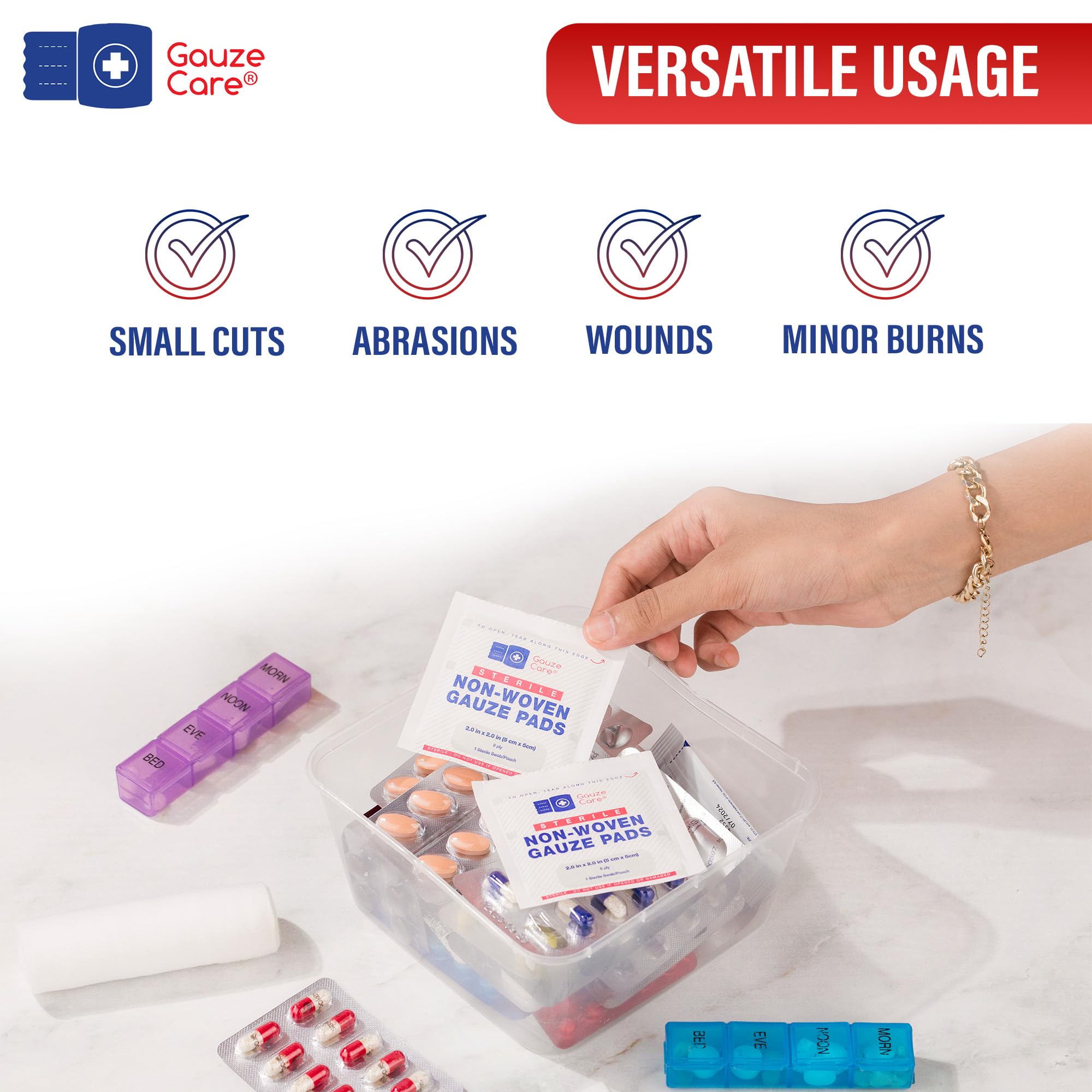 Versatile Usage: The gauze sponge sterile are perfect for all skin types and the treatment of all kinds of wounds, including small cuts, abrasions, wounds, scrapes, and minor burns among others.