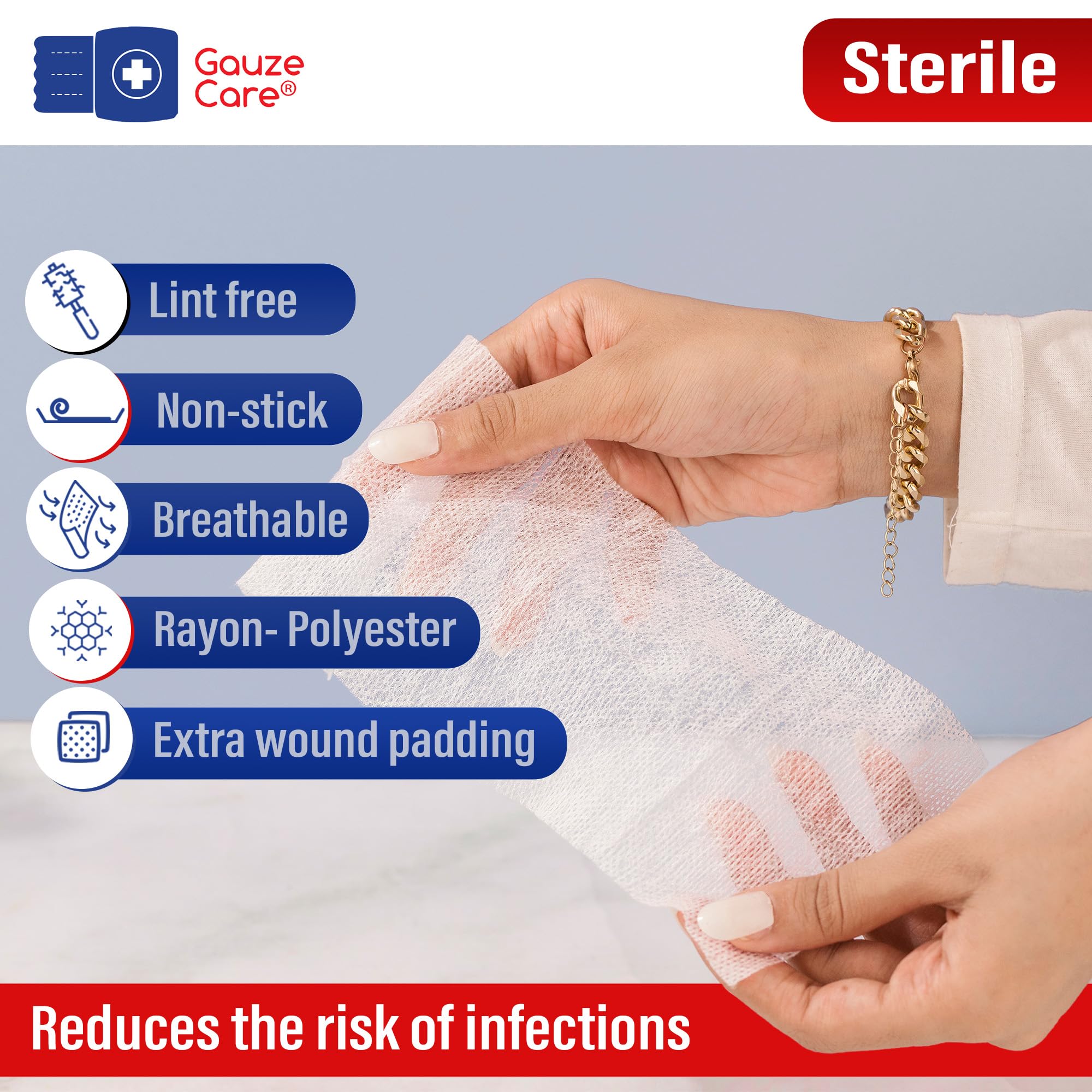 Individually-Wrapped and Sterile: Each box contains 100 Sterilized gauze pads in bulk that are individually wrapped to ensure sterility. The individual packaging is easy to tear, and helps avoid the contamination and wastage of the remaining product.