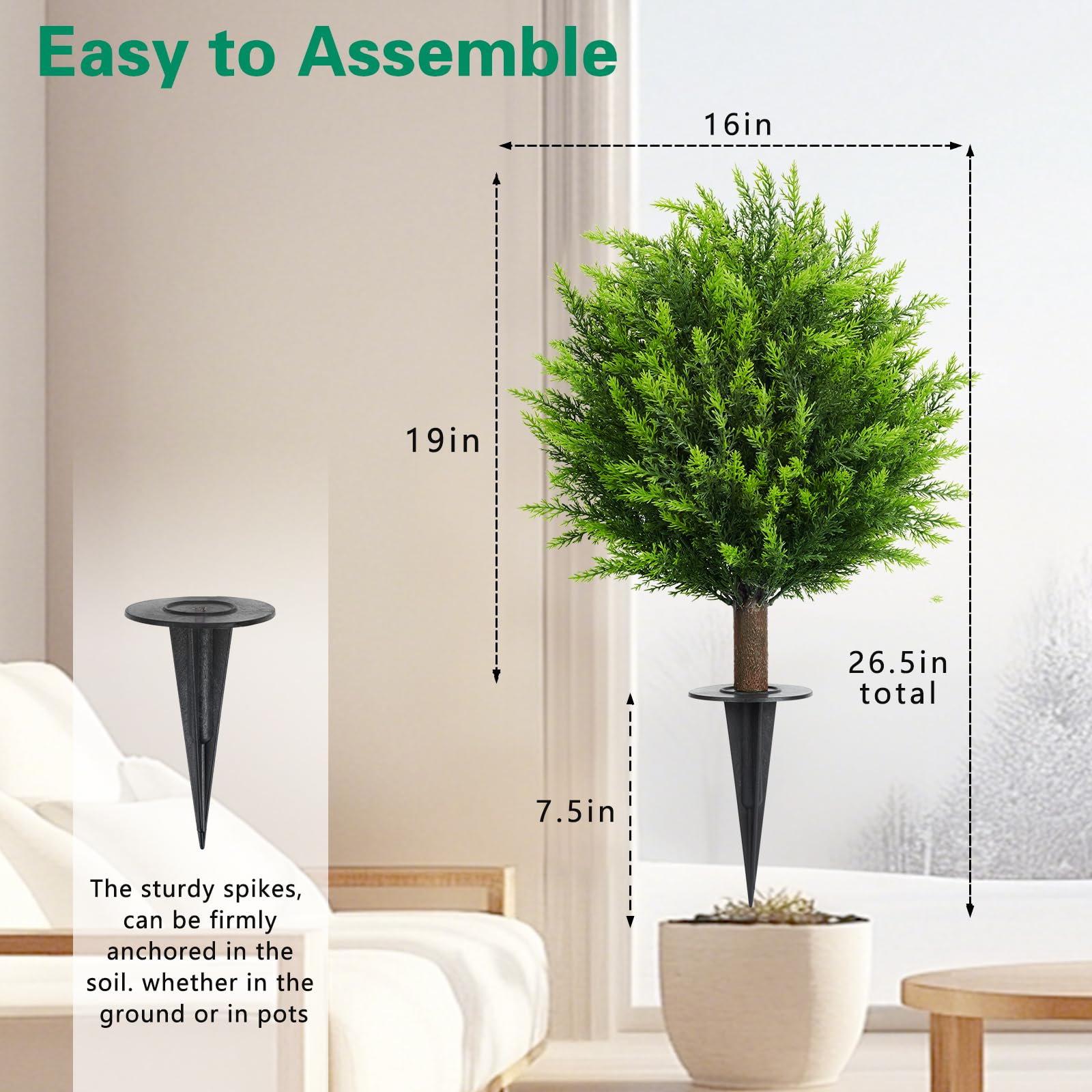 Realistic Artificial Plants: The artificial plants indoor measures 26.5”H x 16”D x 16”W (including a 7.5 inch ground spike). our artificial tree features intricate leaf textures and forms that closely mimic the look of a real plant. Whether displayed indoors or outdoors, this fake outdoor plants seamlessly blends into its surroundings, making it the perfect choice for those seeking a natural, low-maintenance decor style.