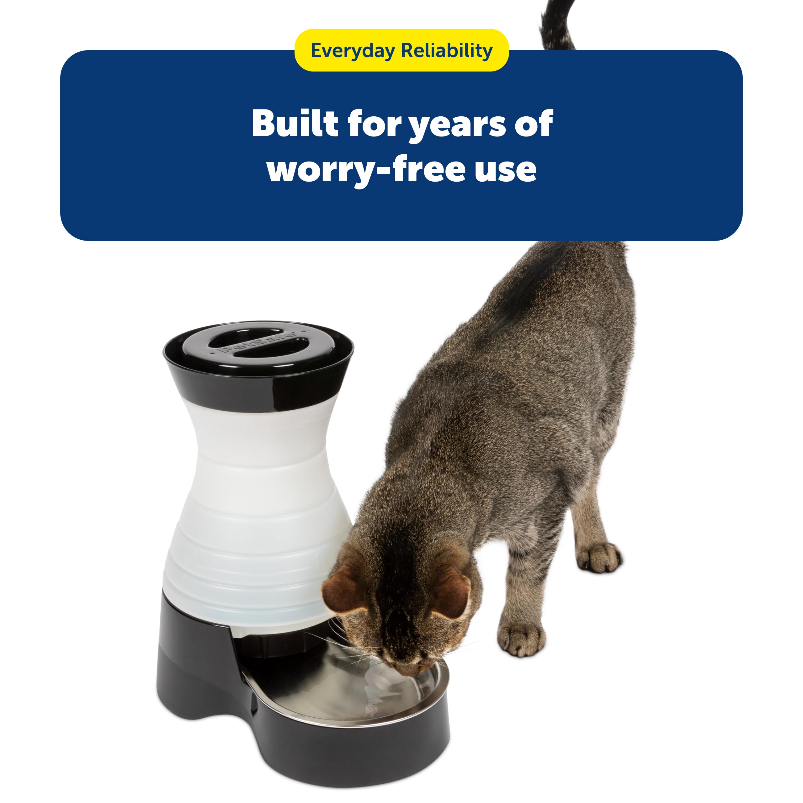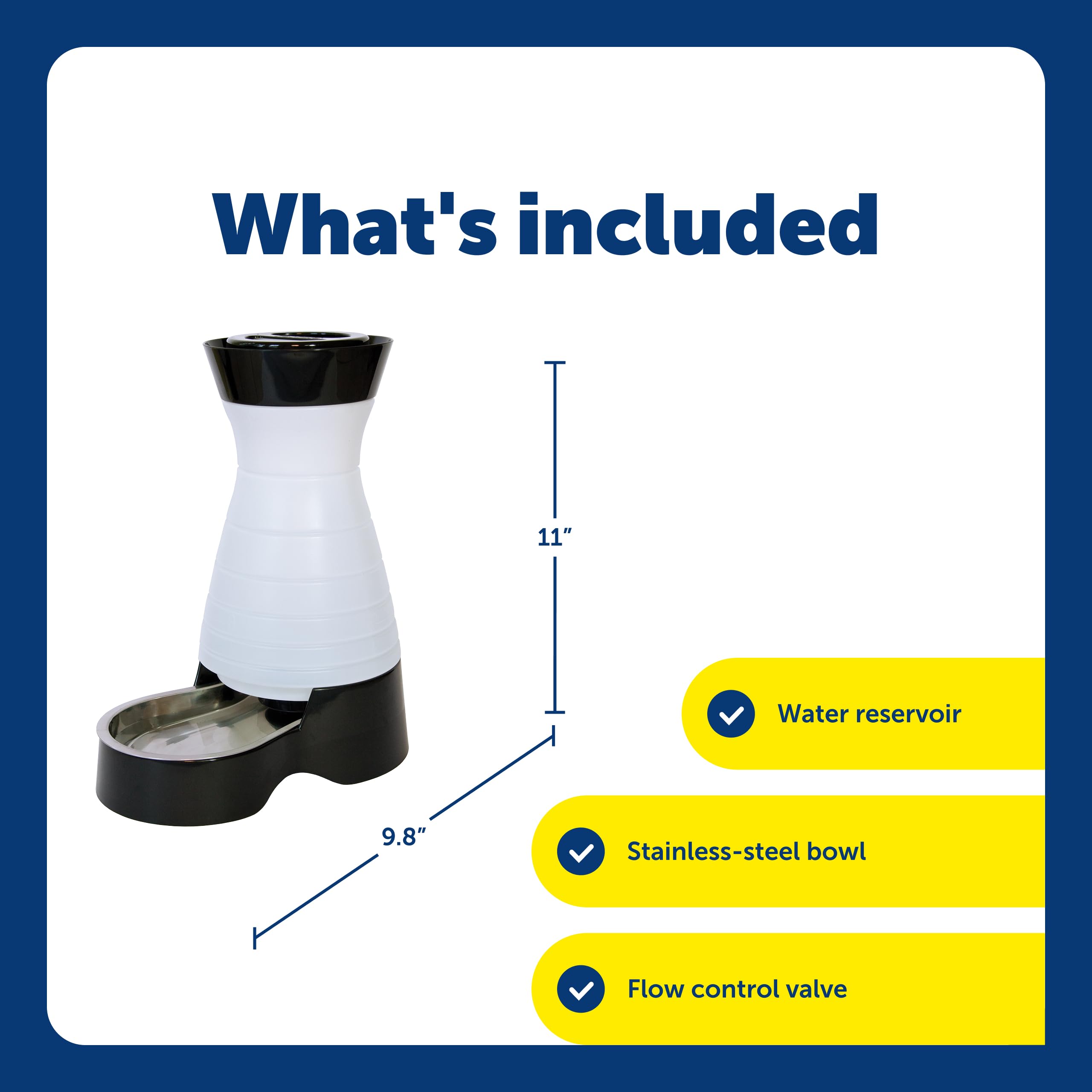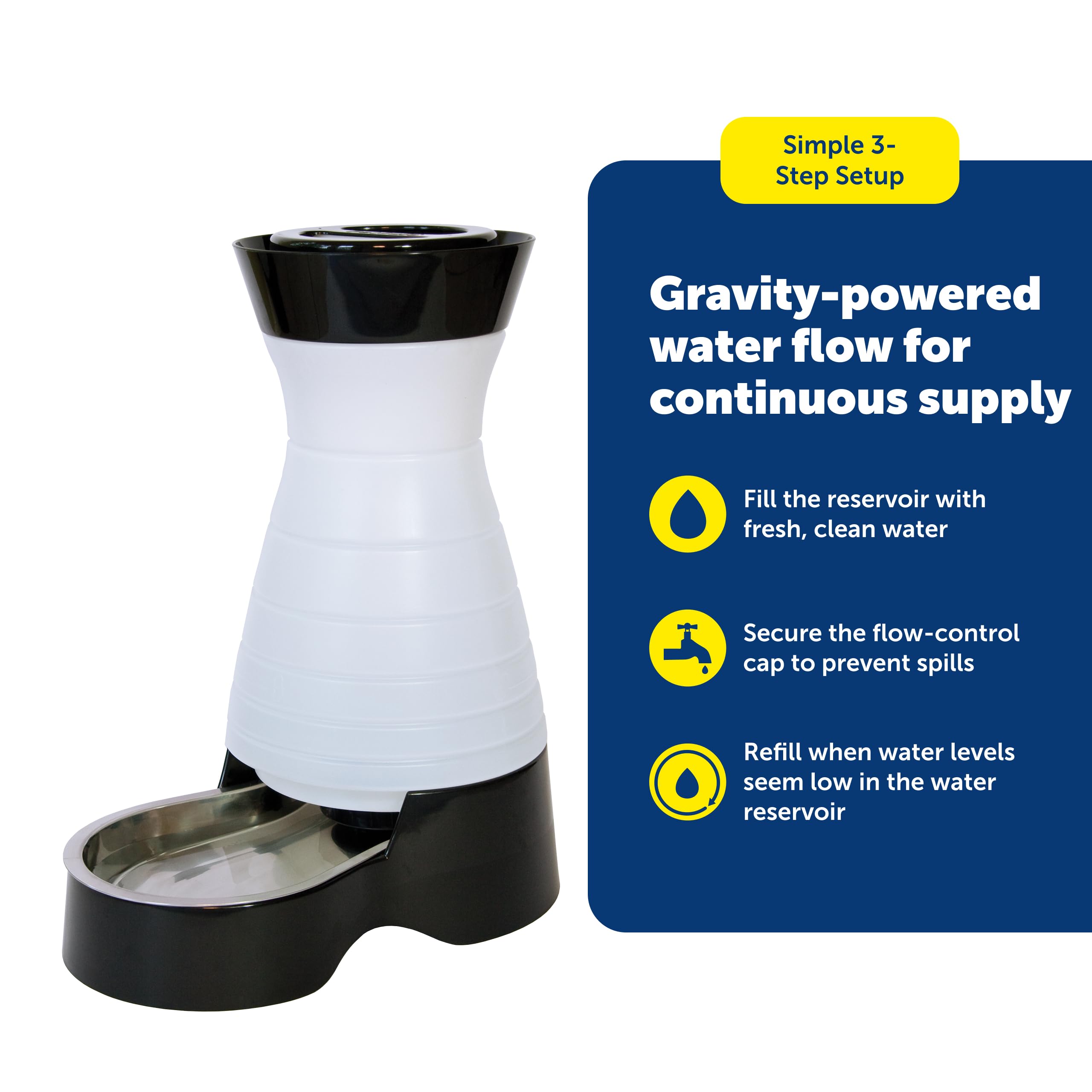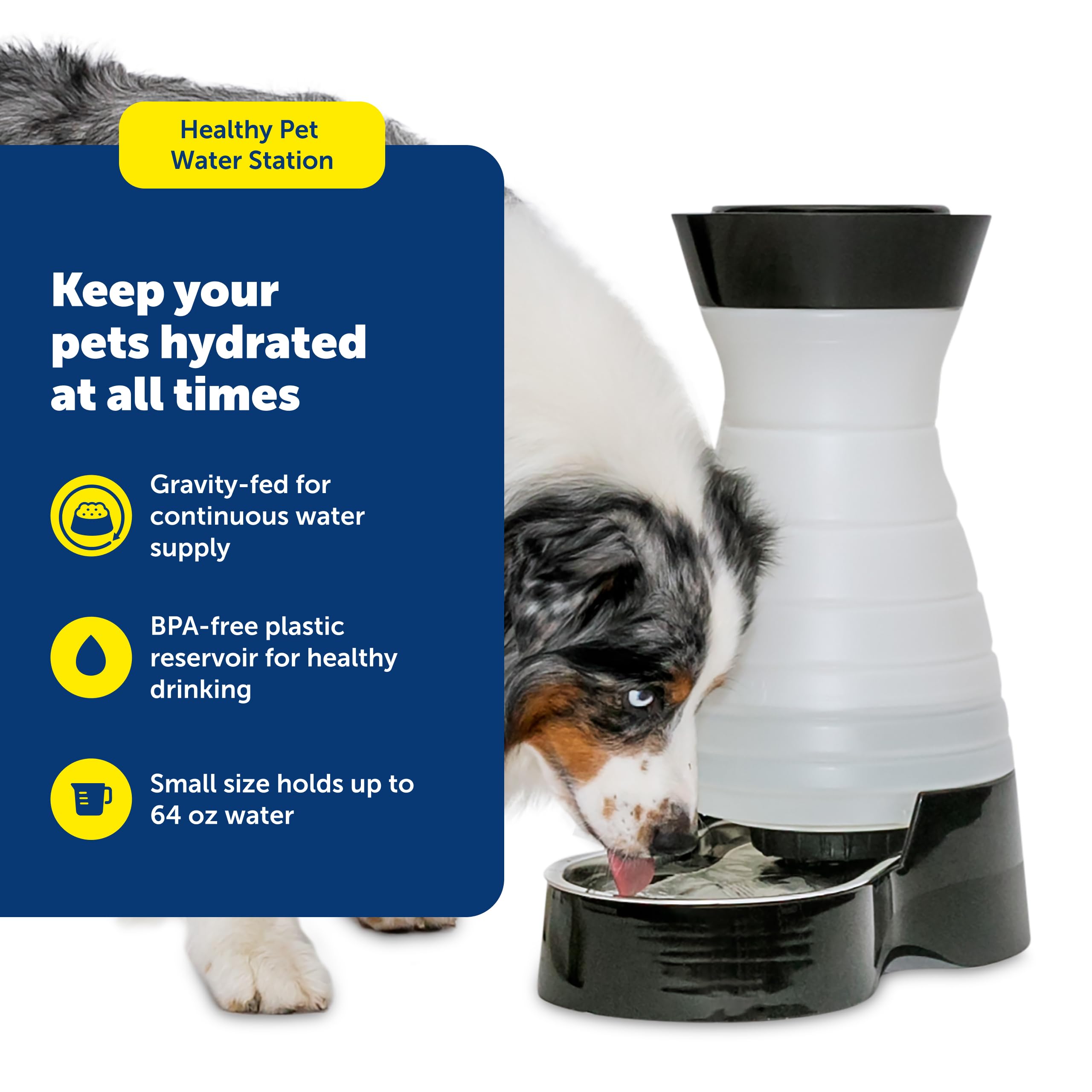Product Description The PetSafe Healthy Pet Water Station will revolutionize your pets drinking water and your home environment. With this gravity water station, your pet gets fresh water, whenever he needs it, served in a stainless steel bowl. Refill the reservoir with water and watch the bowl automatically fill up with fresh, filtered water. The water station disassembles for easy cleaning and the removable, stainless steel bowl is dishwasher safe. Brand Story By PetSafe
