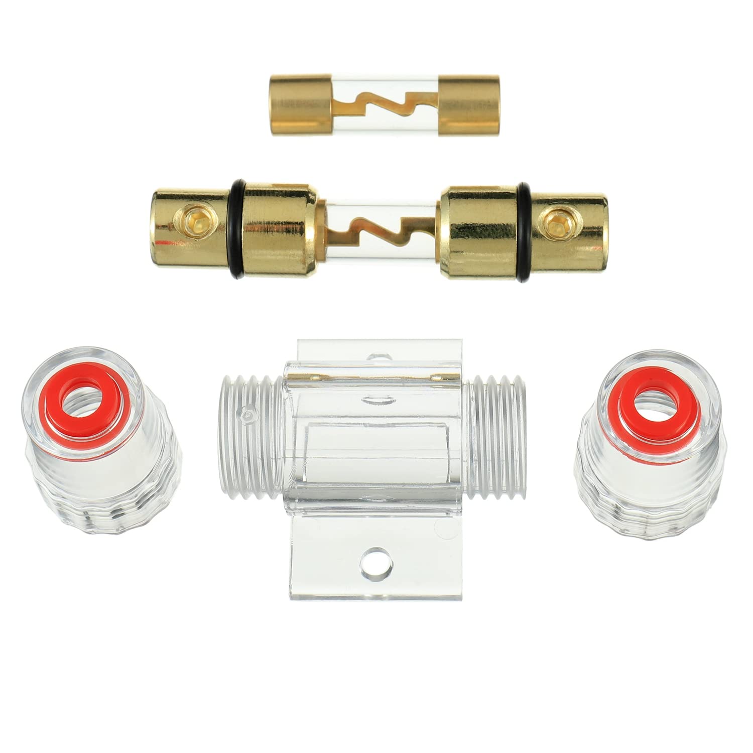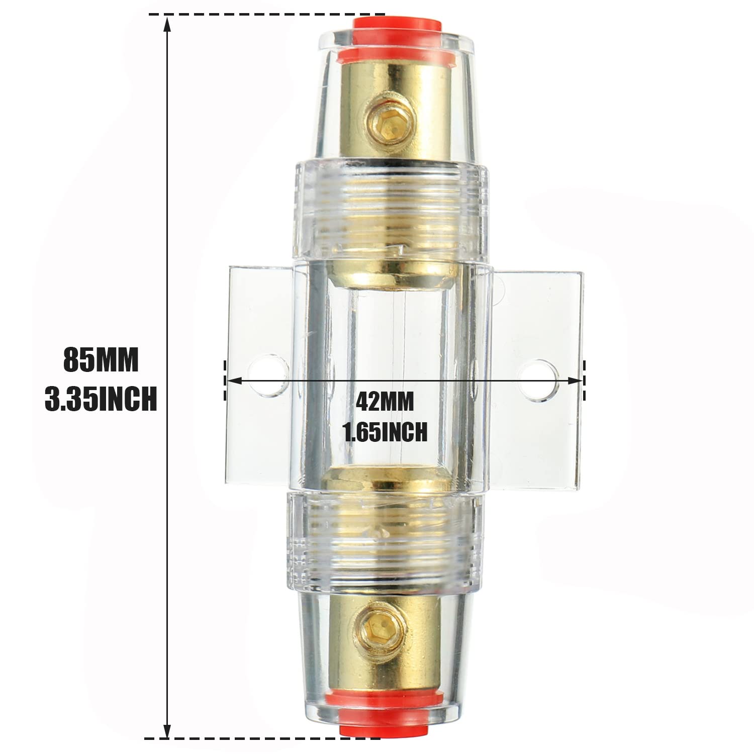 Package Includes: 1 pcs car audio refit AGU fuse holder, fit for 4/6/8/10 gauge wire, with 2 pcs 100 amp AGU fuses