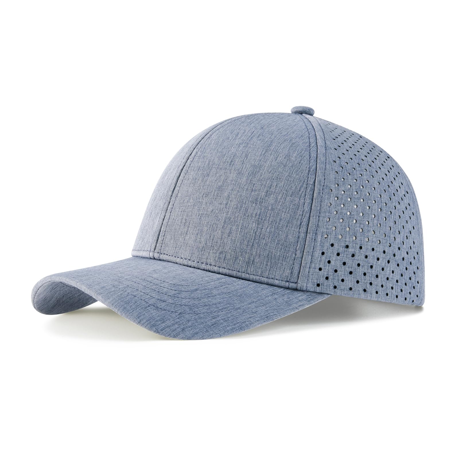 Design: structured front panels, 6-panel cap, curved brim, laser-perforated side & rear panels for breathability, and soft touch snapback closure