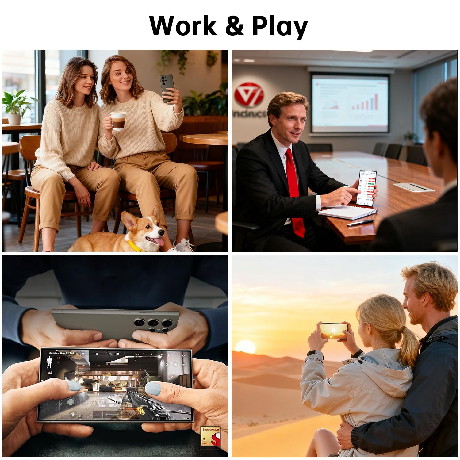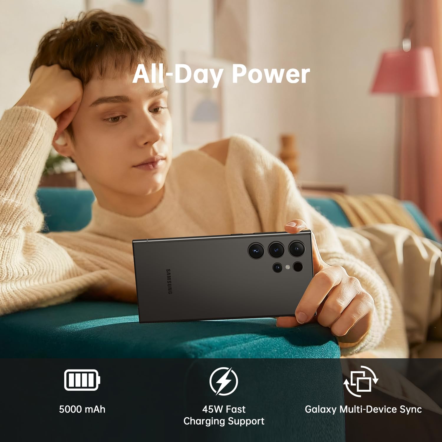 โก Stay productive and powered all day with the Samsung Galaxy S24 Ultra Phone. Equipped with a massive 5000mAh battery, fast charging, and a bundle wireless charging accessory, this AI Smartphone can handle extended use without downtime. Enjoy seamless multitasking with Snapdragon 8 Gen 3, smooth gaming, and fast app switching, making it perfect for business users, creators, and anyone who needs powerful unlocked android phones for high-intensity usage.