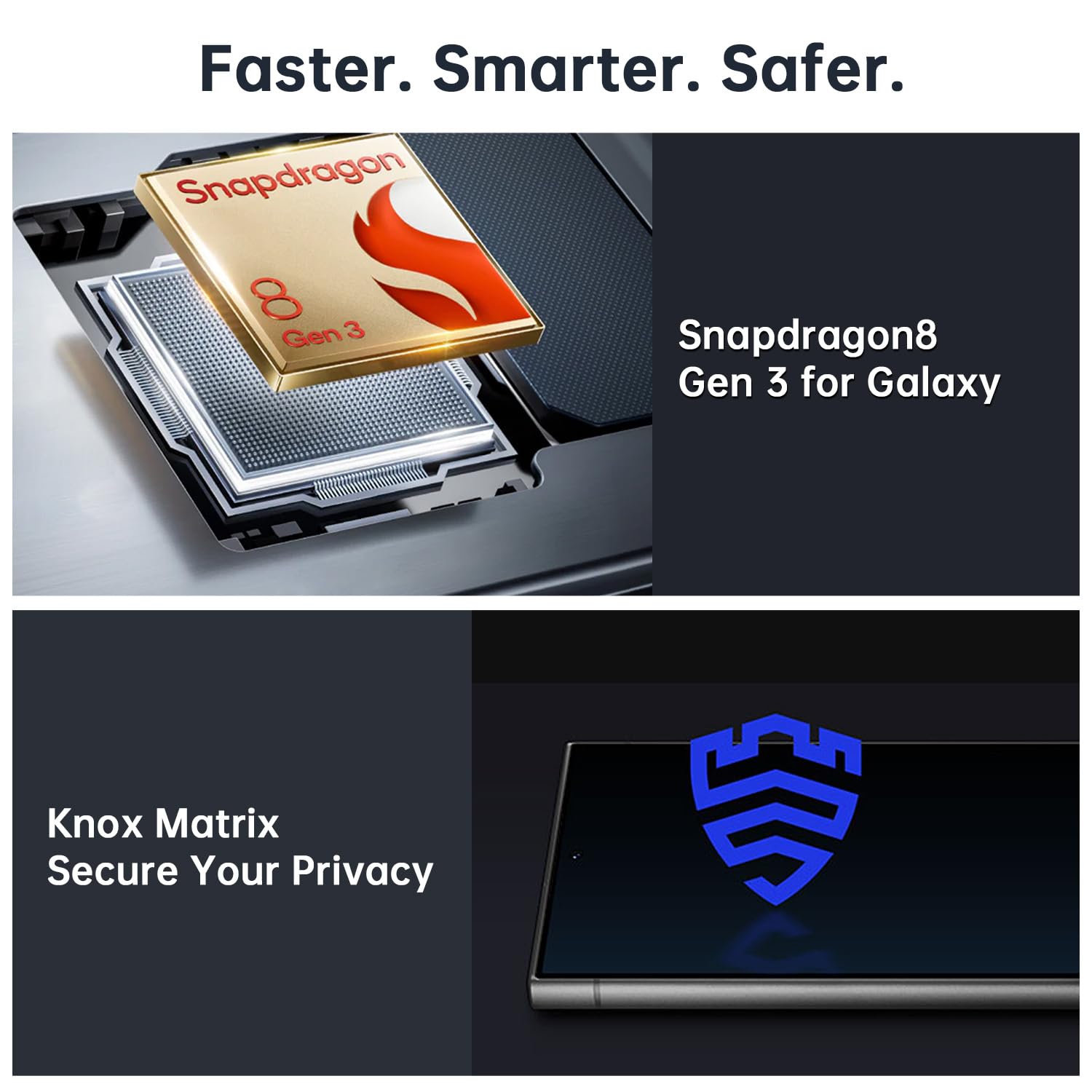 ๐ Built with a titanium frame, IP68 water and dust resistance, and a sleek titanium black design, the Samsung S24 Ultra cell phone blends durability with elegance. Its 6.8" QHD+ AMOLED display reaches 2,600 nits for stunning clarity, while the built-in S Pen delivers precision for work and creativity. This android 14 smartphone offers premium performance, smart security, and craftsmanship that set it apart among top unlocked android phones.
