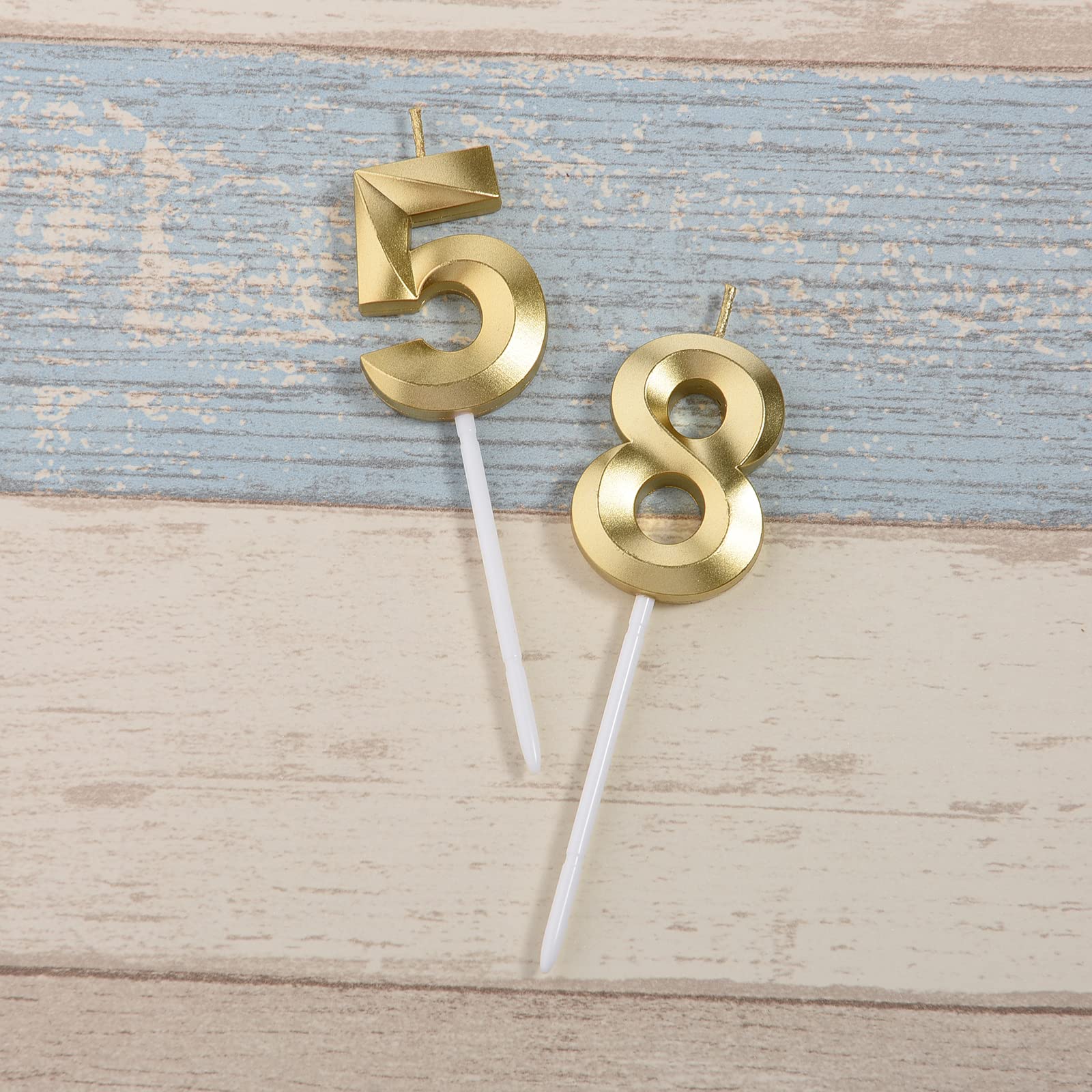 INSTRUCTIONS: Size: Width:1.3 in. Number height: 1.9 in. Total height: 4.8in Color : Glitter Gold Material : quality wax ,smokeless and non-toxic Burning Time :approx 4-5 minutes Package included:2 Pcs ,Gold Number 85 birthday candles PLEASE NOTE: Please keep the candles in shade away from the fire and make sure the size match to your birthday cakes