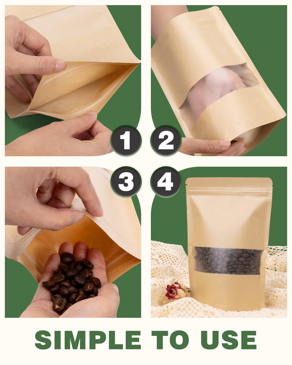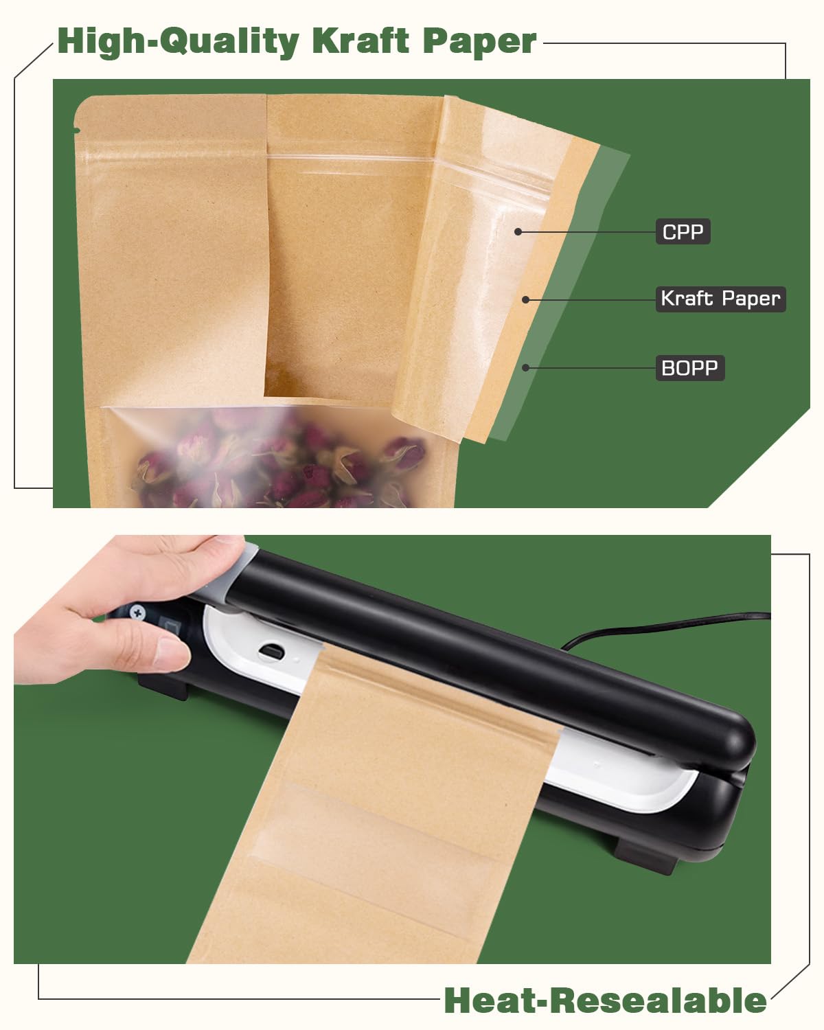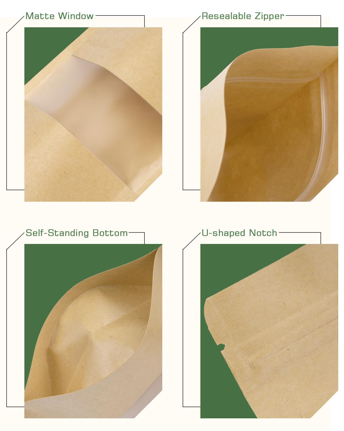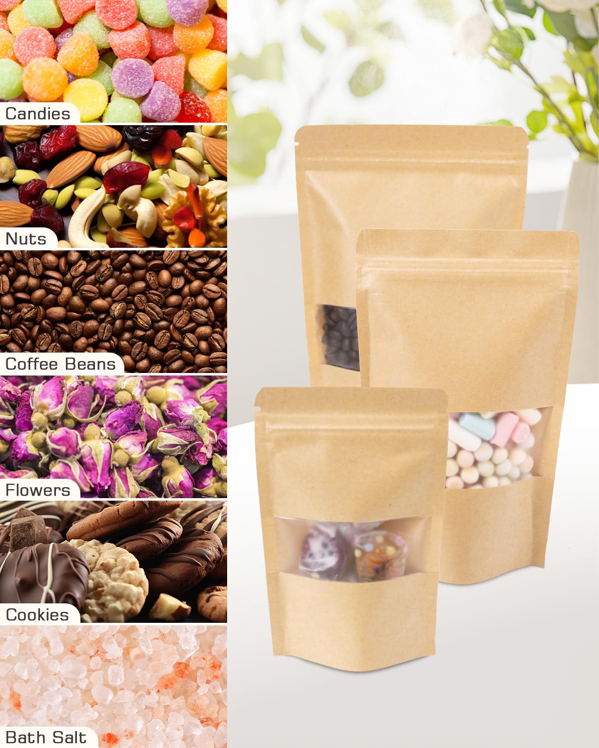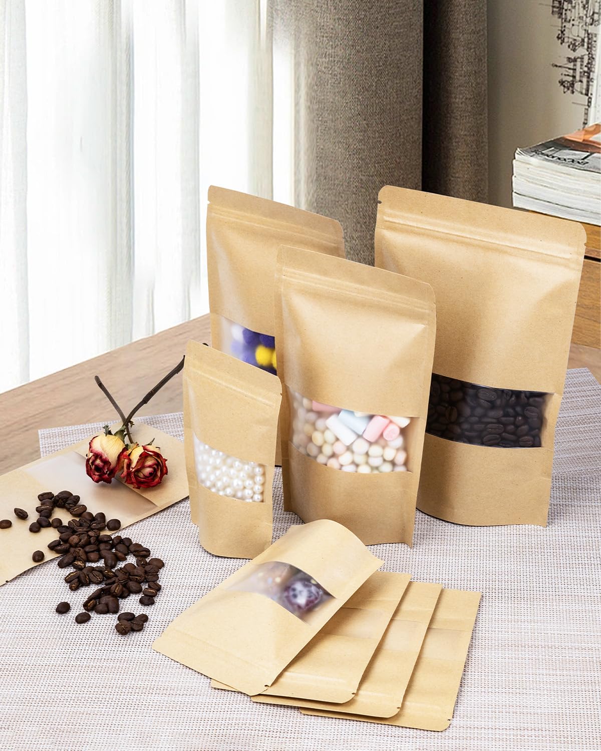 【High Quality Kraft Paper Bags】Our food reusable packaging bags are made of high quality kraft paper and plastic window, which is safe and durable. Our package includes 200 reusable kraft paper bags, the external size is 3.5x5.5 inches, the window height is 1.26 inches, the appearance is beautiful, and the product can be kept fresh. Please note that the size is small, please check the size before ordering.