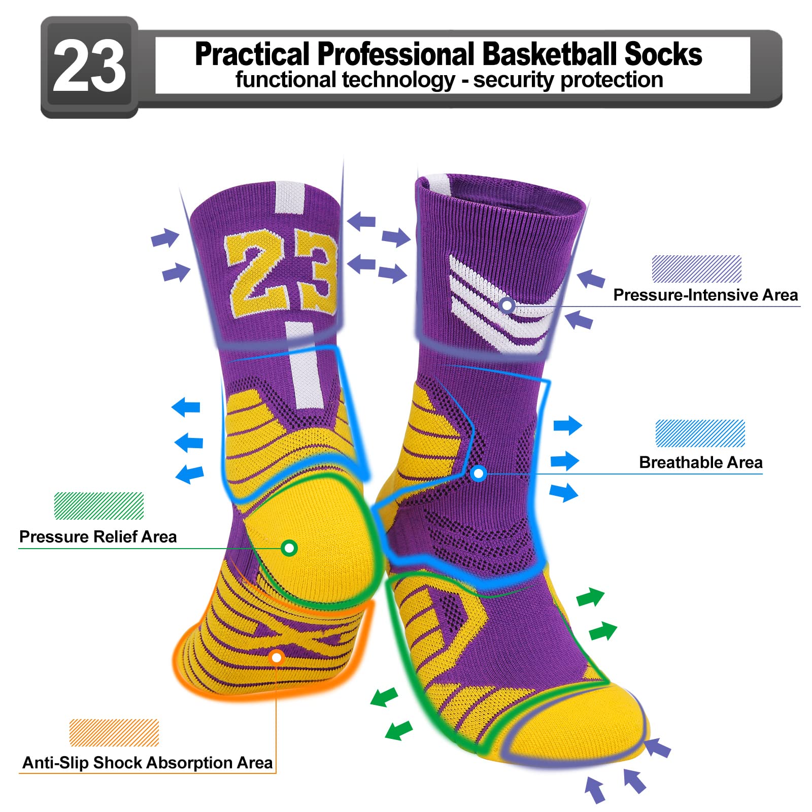 🧦 Profession Creates Comfort - For a demanding sport like basketball, our professional designers have carefully and reasonably designed to increase the pressure-intensive areas, pressure relief areas, ventilation areas, and non-slip shock absorption areas to ensure more comfortable wearing. We also have to ensure that your entire foot is fully supported during high-impact moments of the game.