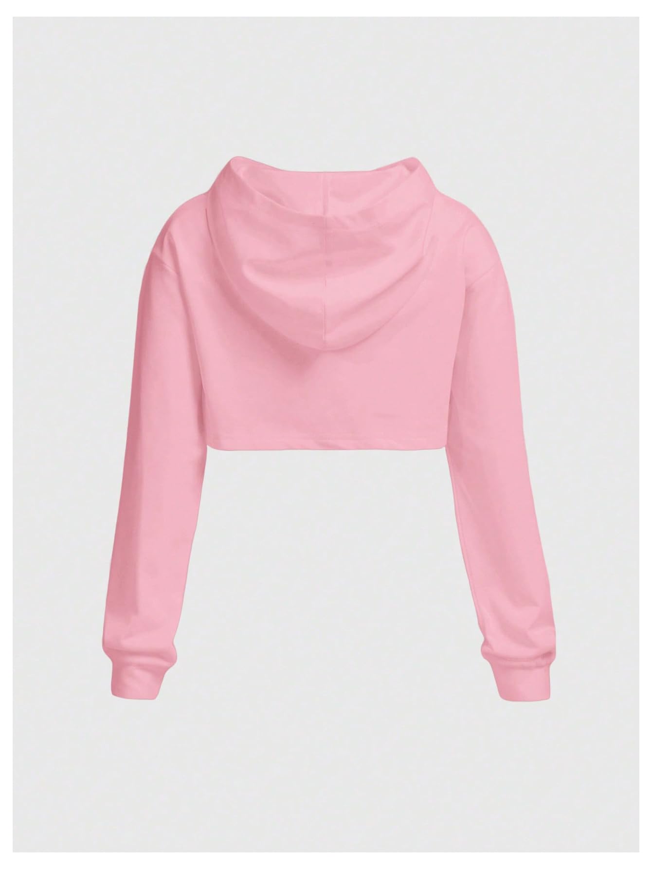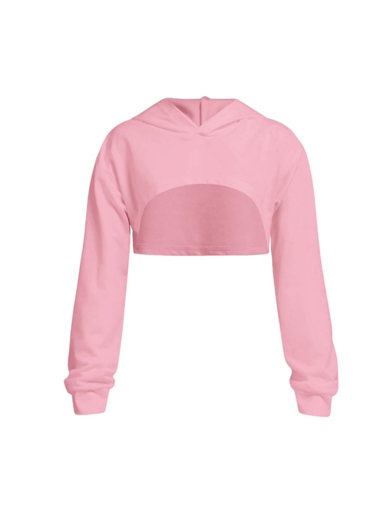 Design: Drop shoulder, pullover, long sleeve, hooded, high low asymmetrical hem, solid color, cropped length, solid color, casual style