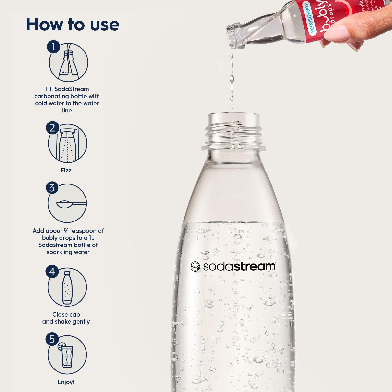 Add bubly drops to your SodaStream Sparkling Water to make your own bubly sparkling water at home.