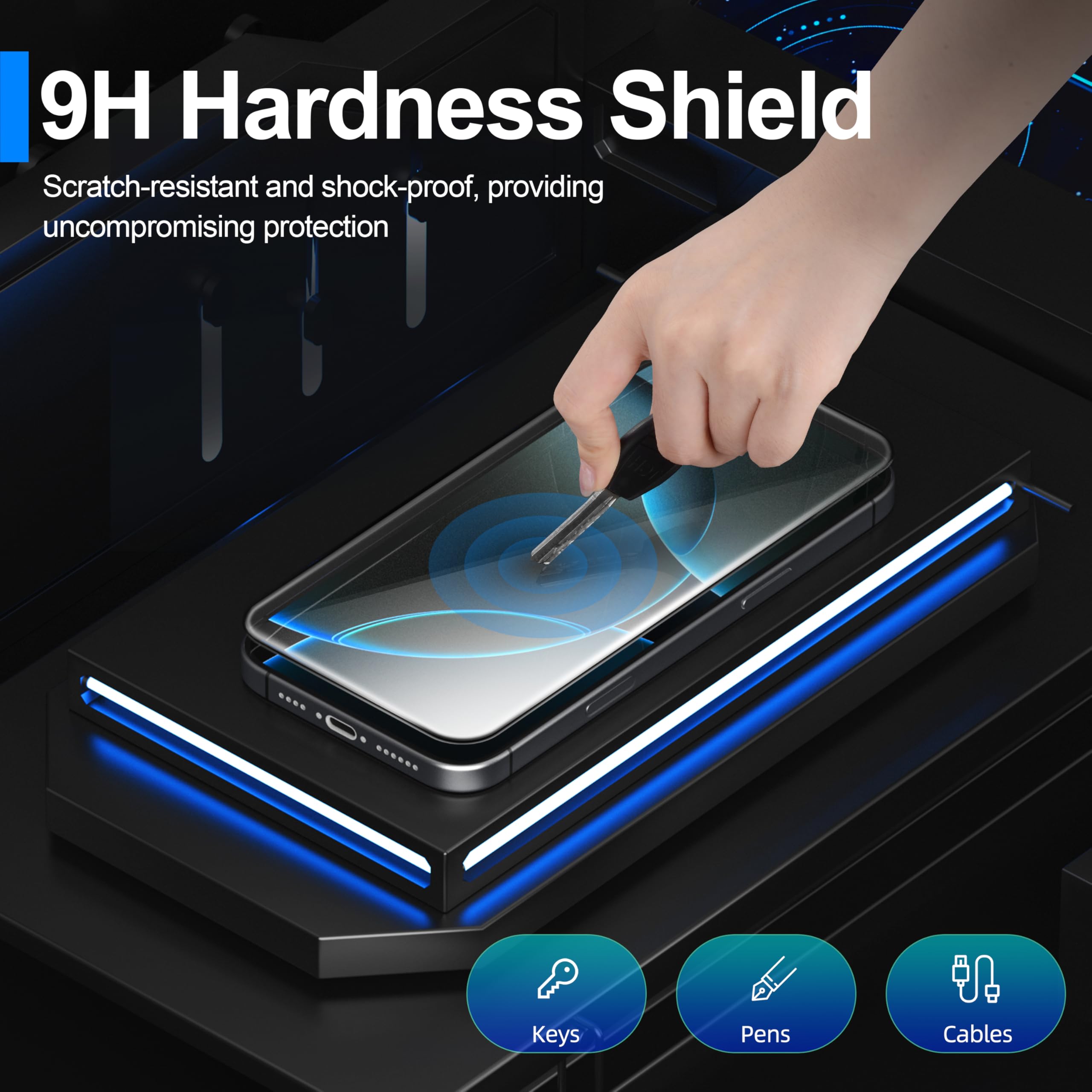 [3+3 Pack] This product includes 3 pack screen protectors and 3 pack camera lens protectors with Installation Frame. Due to the rounded edge design of the iPhone 16 Pro and to enhance compatibility with most cases, the tempered glass screen protectors was designed to be slightly smaller than the whole phone screen surface, yet still covering the entire display area to provide maximized screen protection.[Not for iPhone 16e/16 6.1 inch, iPhone 16 Pro Max 6.9 inch, iPhone 16 Plus 6.7 inch]