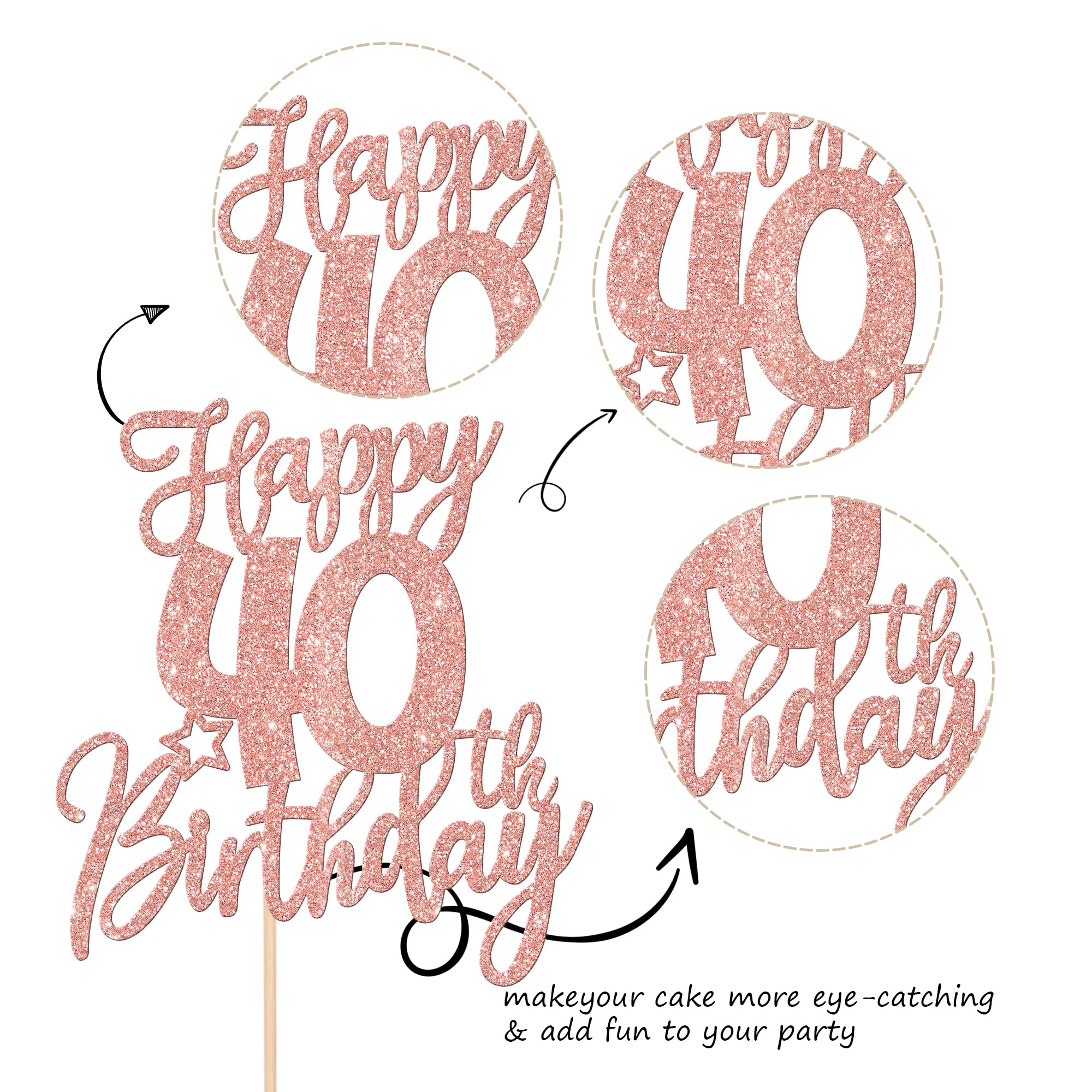 Wide Usages ! The happy 40th birthday cake topper is perfect for 40th birthday party,cheers to 40 years party, 40th anniversary party cake decorations,it can make your cake more attractive and bring the fun to your party.You can also apply them for ice cream, fruits, cookies and other desserts.