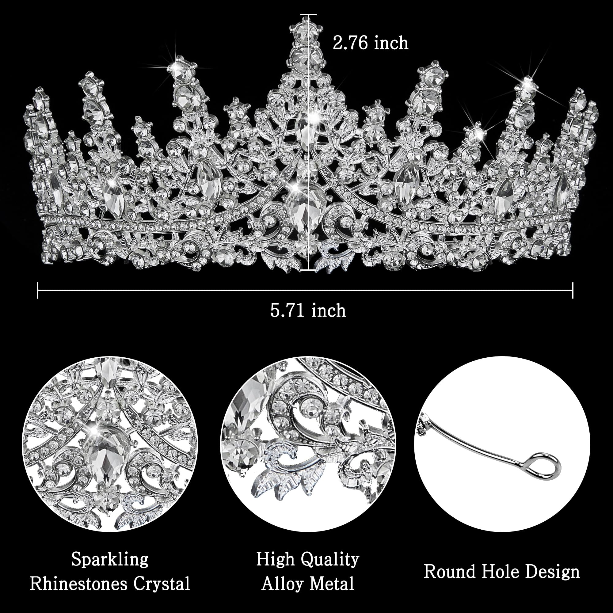 One Size Fits Most: Our crown is silver and measures approximately 2.76 inches (7cm) tall and 5.71 inches (14.5cm) in diameter. Specially designed to fit women's head size, suitable for adults, perfectly fit your charming hairstyle and face shape.