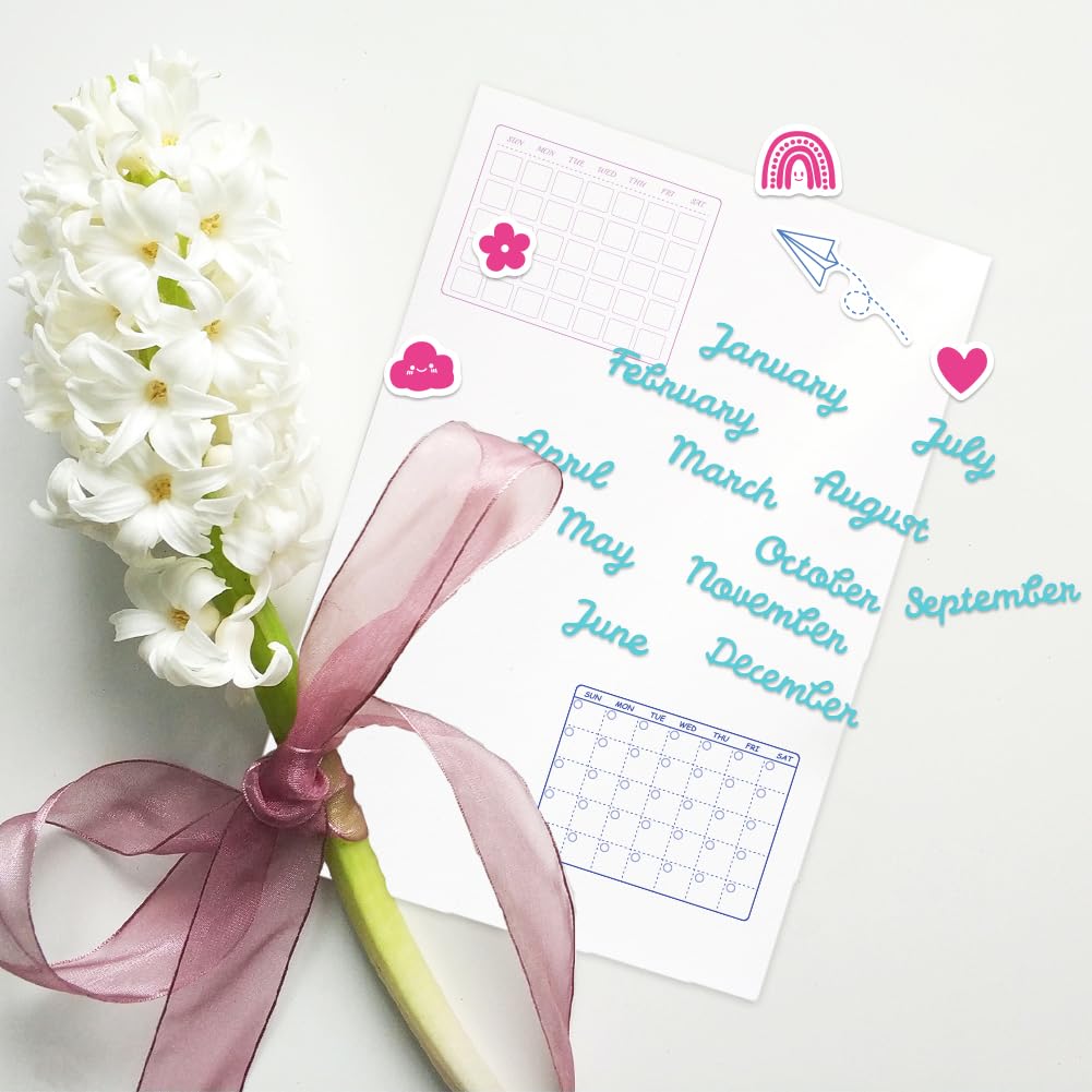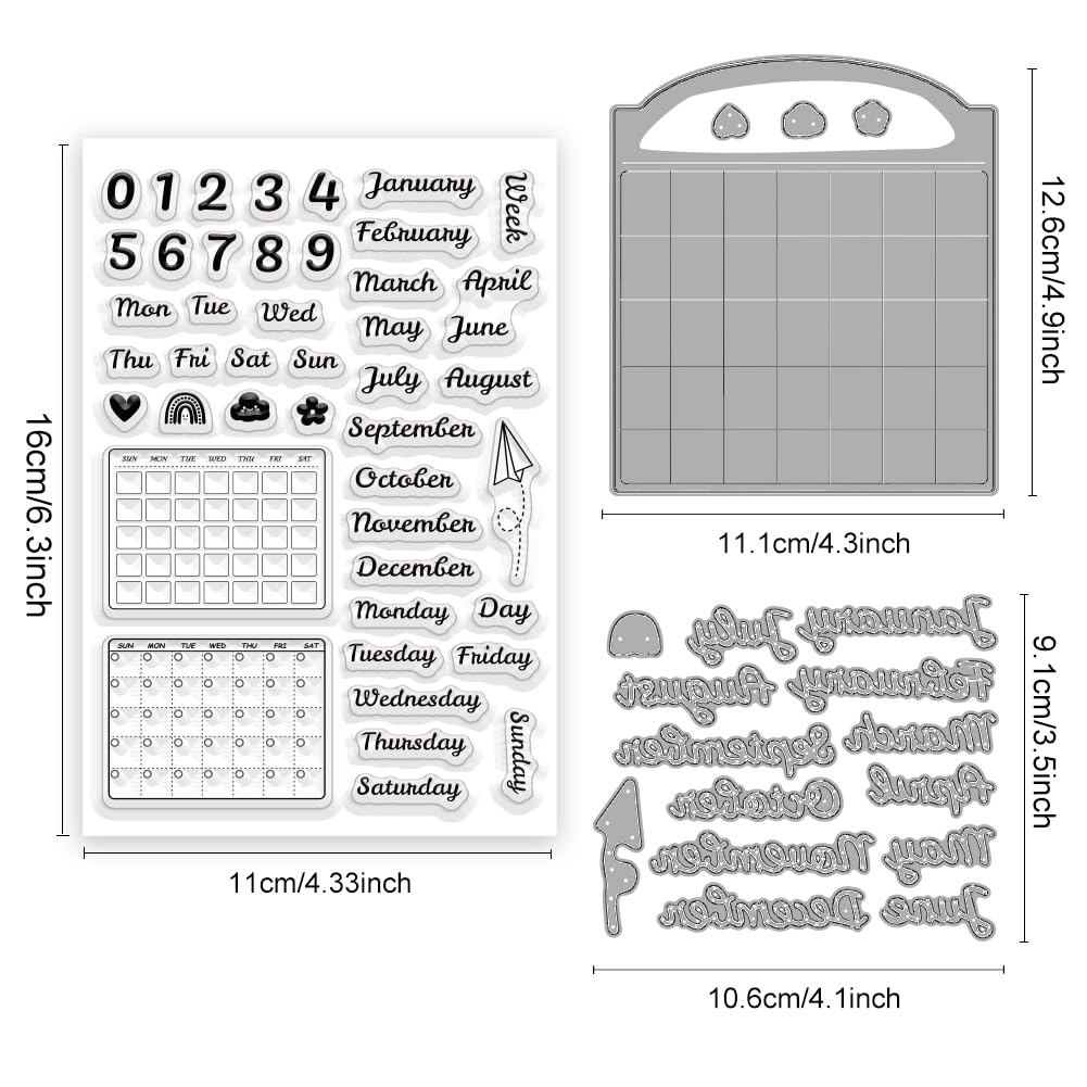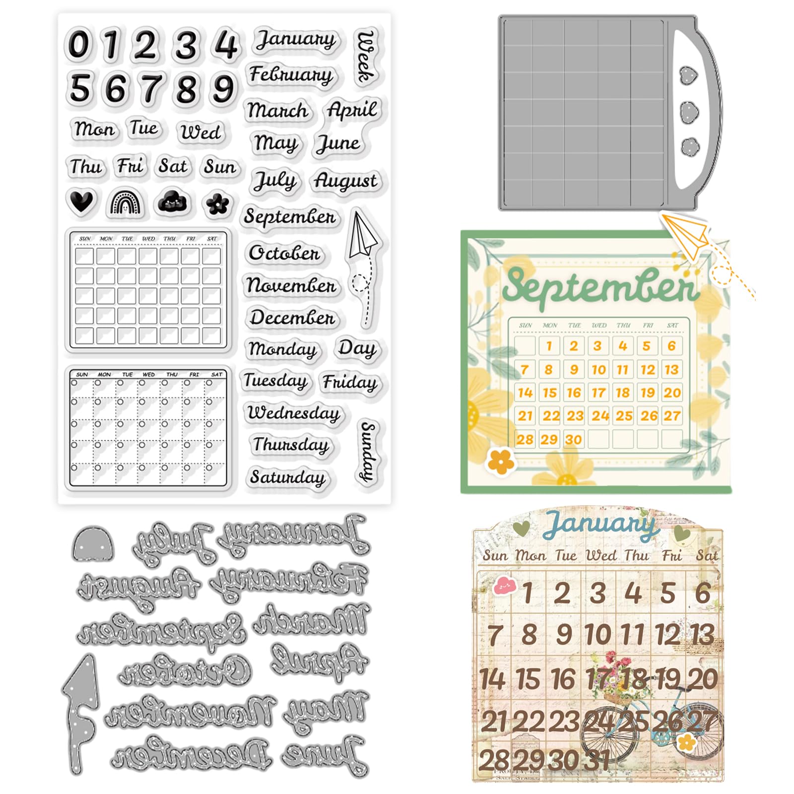 Calendar Planner Stamps and Cutting Dies Set: This stamps and cutting dies set includes date, weeks, months and matching frame cutting dies, which are great for decorating your cards or add plans in your journal, or add decorations to your scrapbook.
