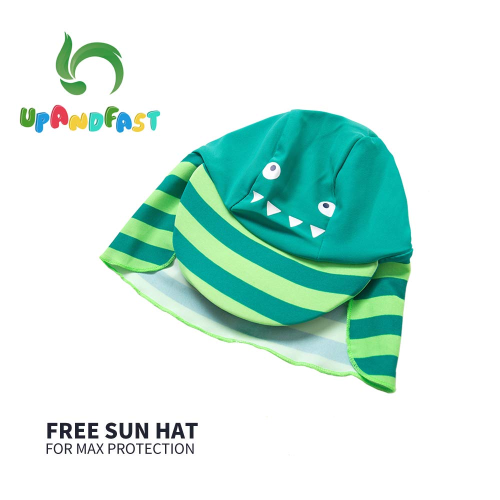 CUTE SUN HAT: Toddler rash guard that comes with a lovely hat, it covers baby's delicate face and neck. which can give baby more protection when playing at the sea, beach or under the sun