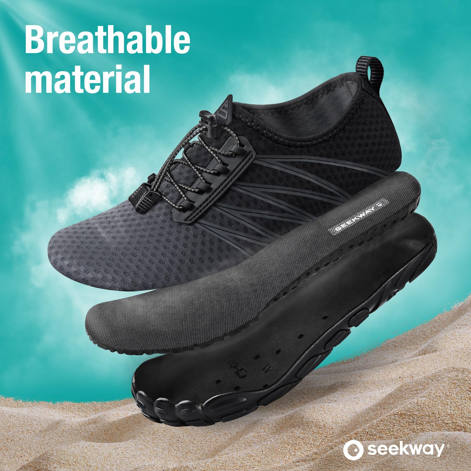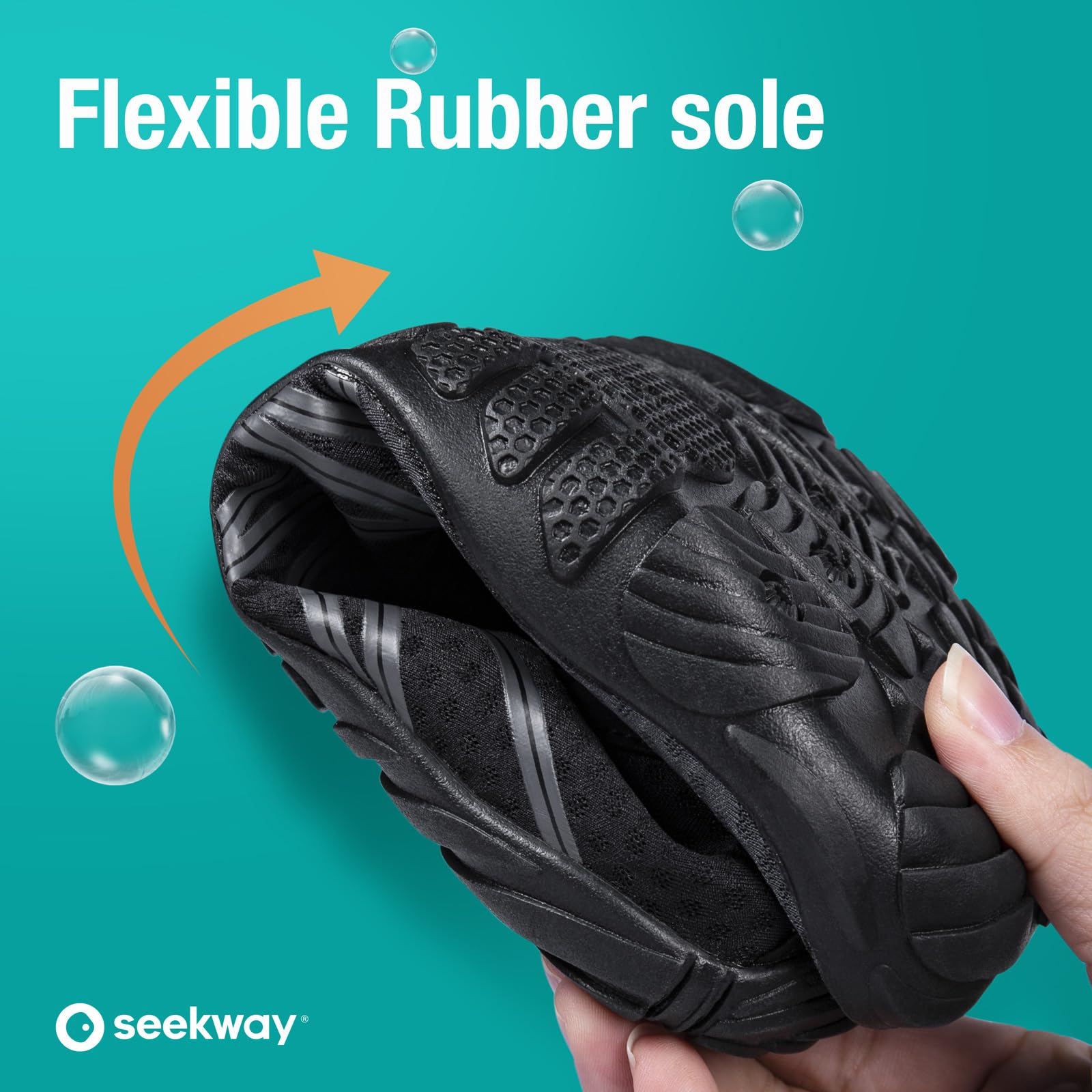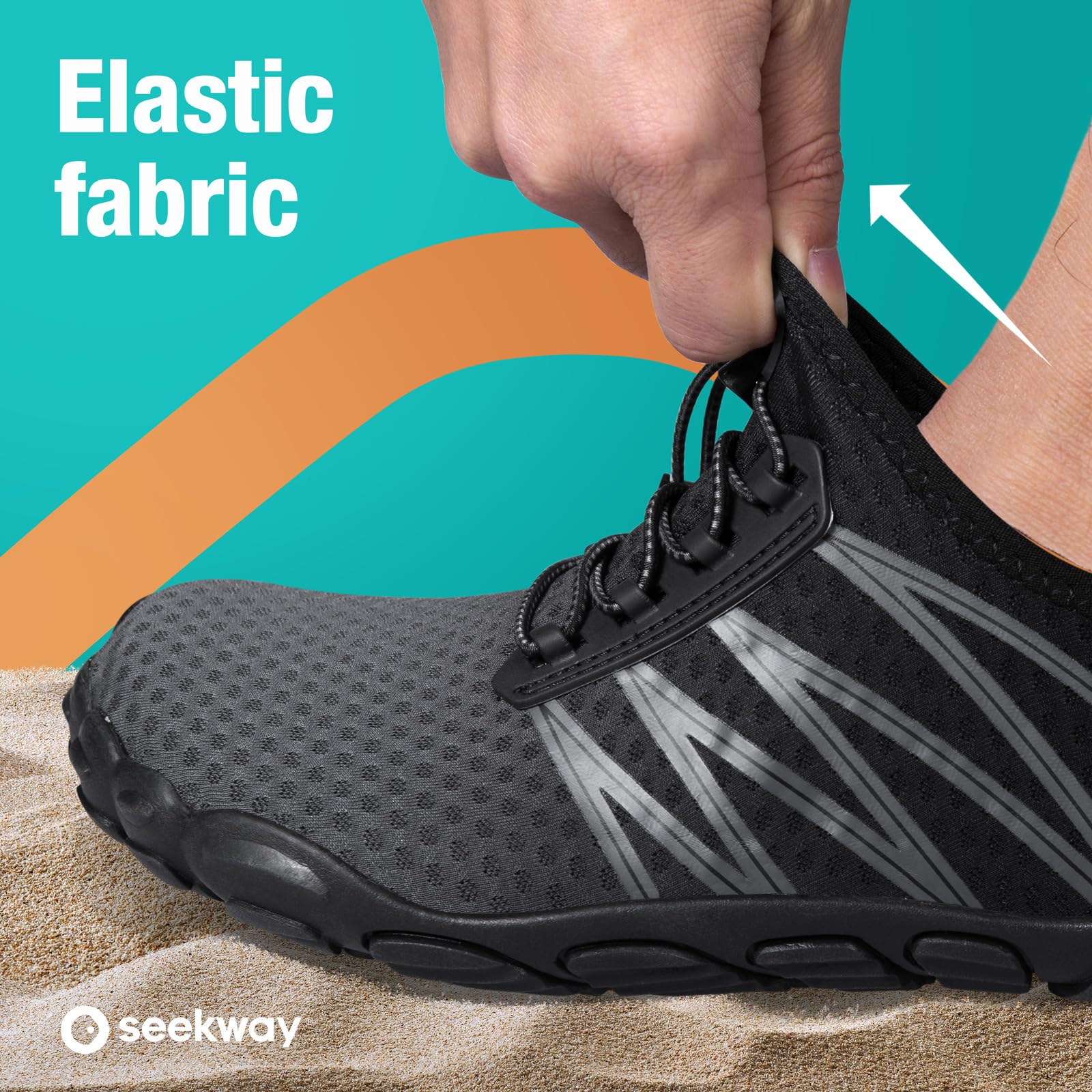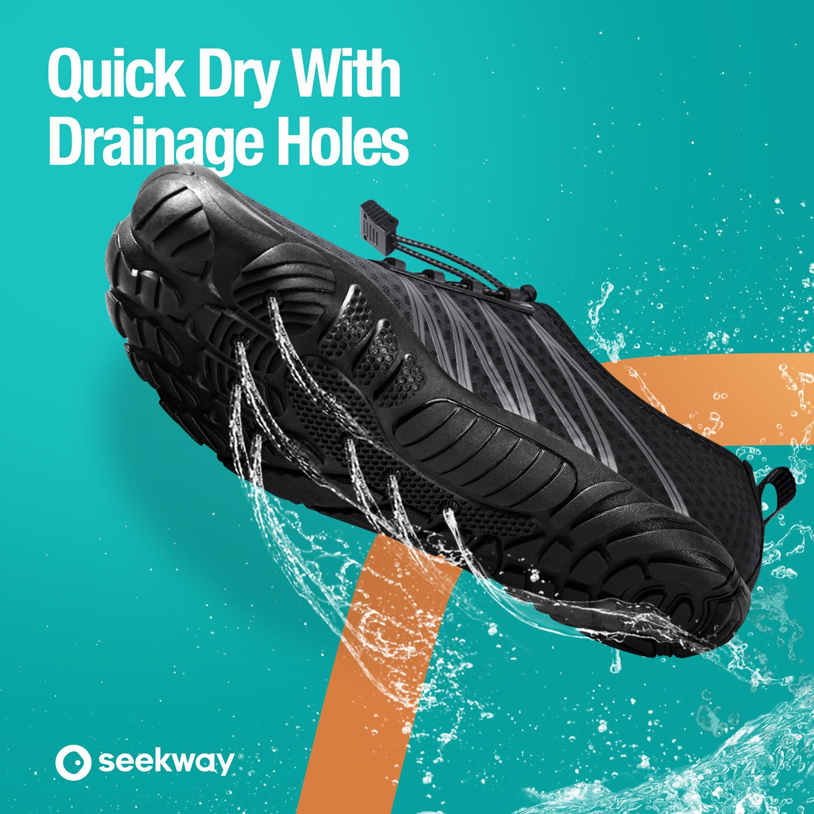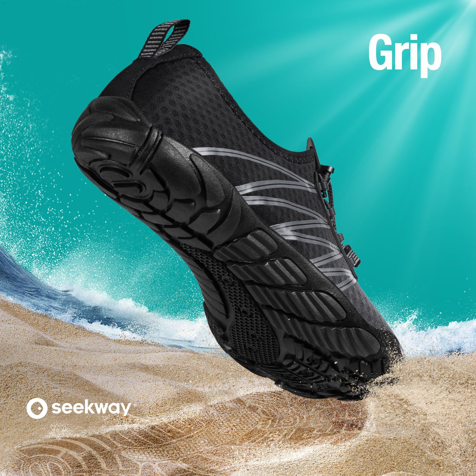 All-round Protection:Thick rubber soles and a toe cap keep your feet completely protected from sharp objects and provide great cushioning. The 3D non-slip treads provide exceptional grip even in slippery conditions. This makes it a great choice for outdoor sports.