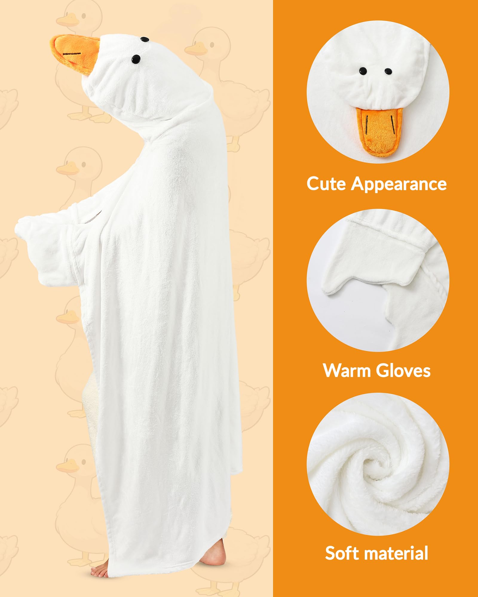 Adorable Goose Design: This wearable hooded blanket features a silly and funny goose with fun gloves and realistic details, making it a must-have for goose lovers! Perfect as goose gifts for teen girls or boys, and adults who enjoy quirky and cute style.