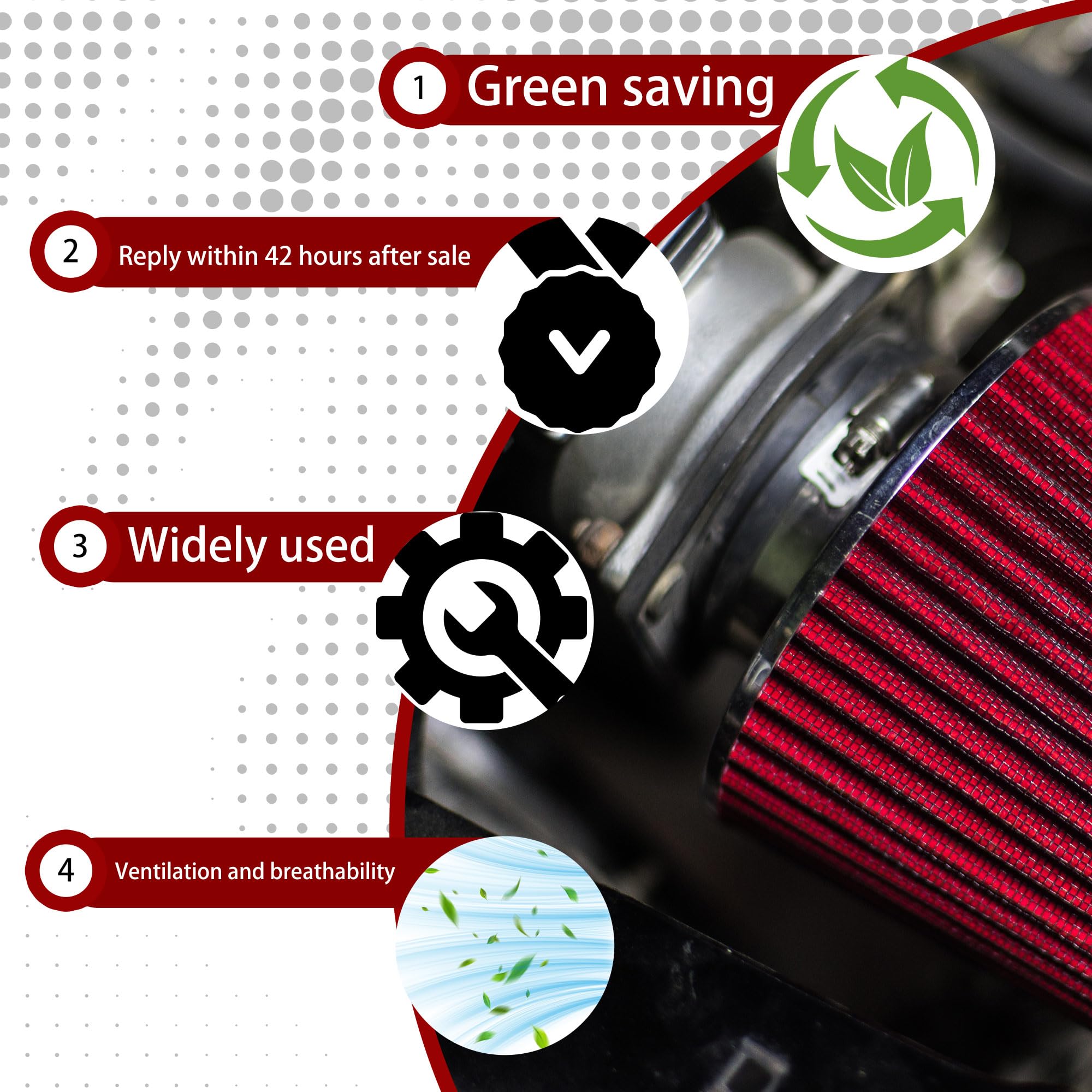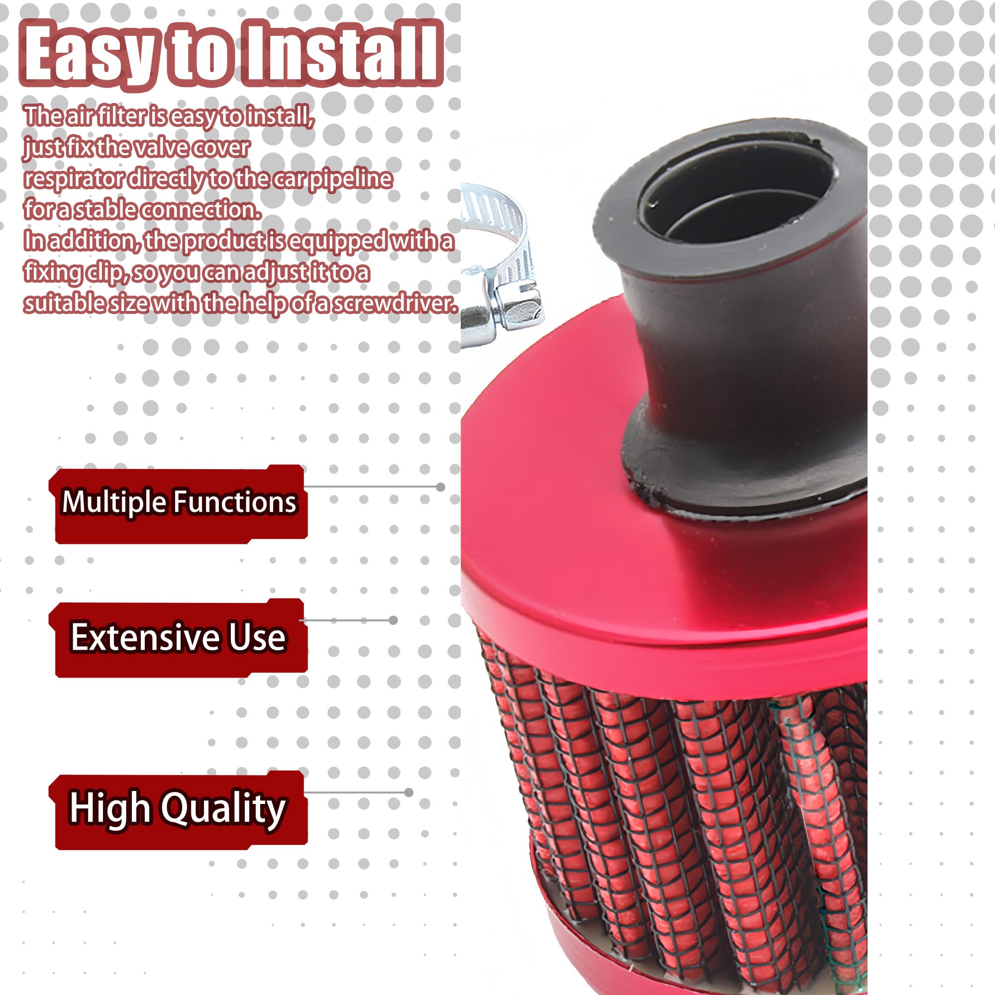 Easy to clean: It is washable and can extend the life of the engine, easy to install (directly bolted)