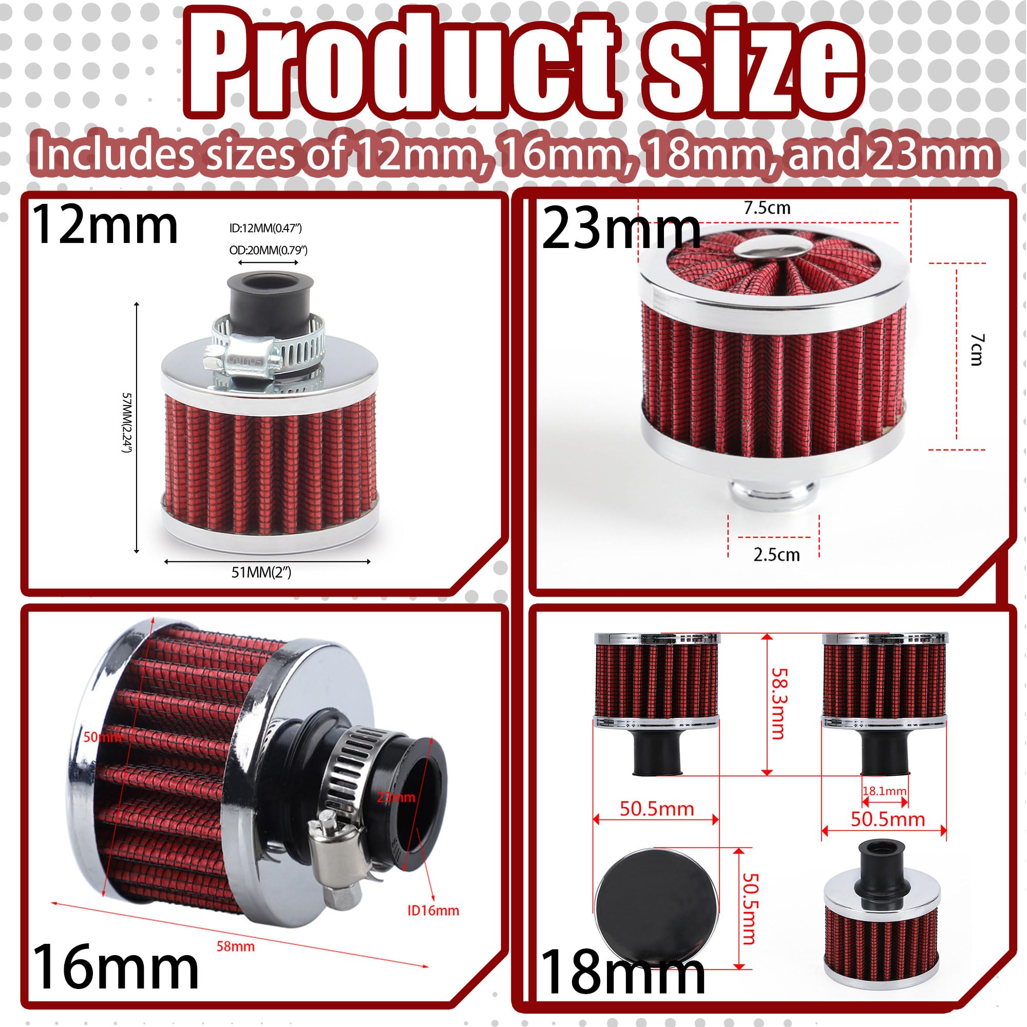 Function: Helps to inhale more air, thereby improving throttle response and increasing horsepower. Fine filter can increase air flow