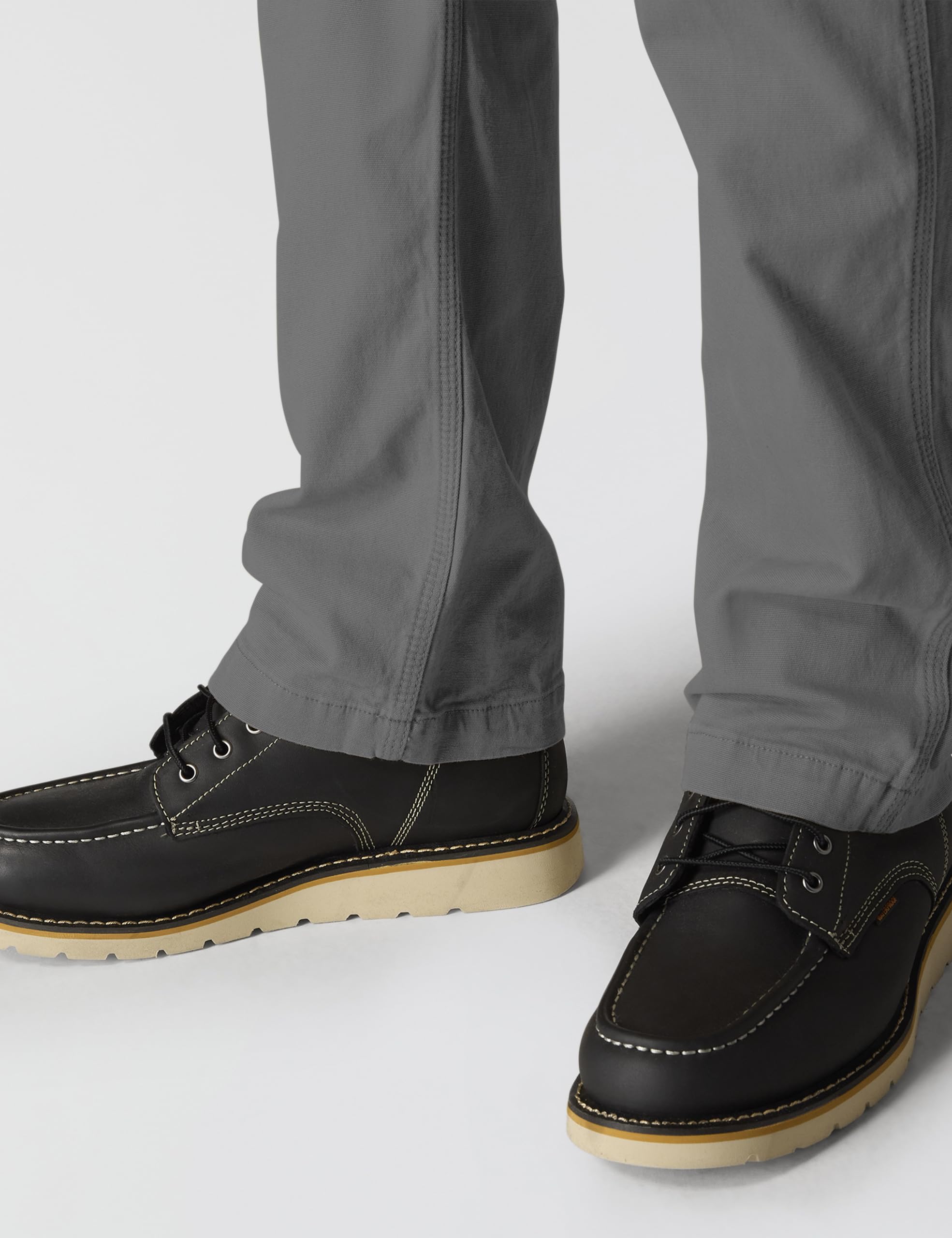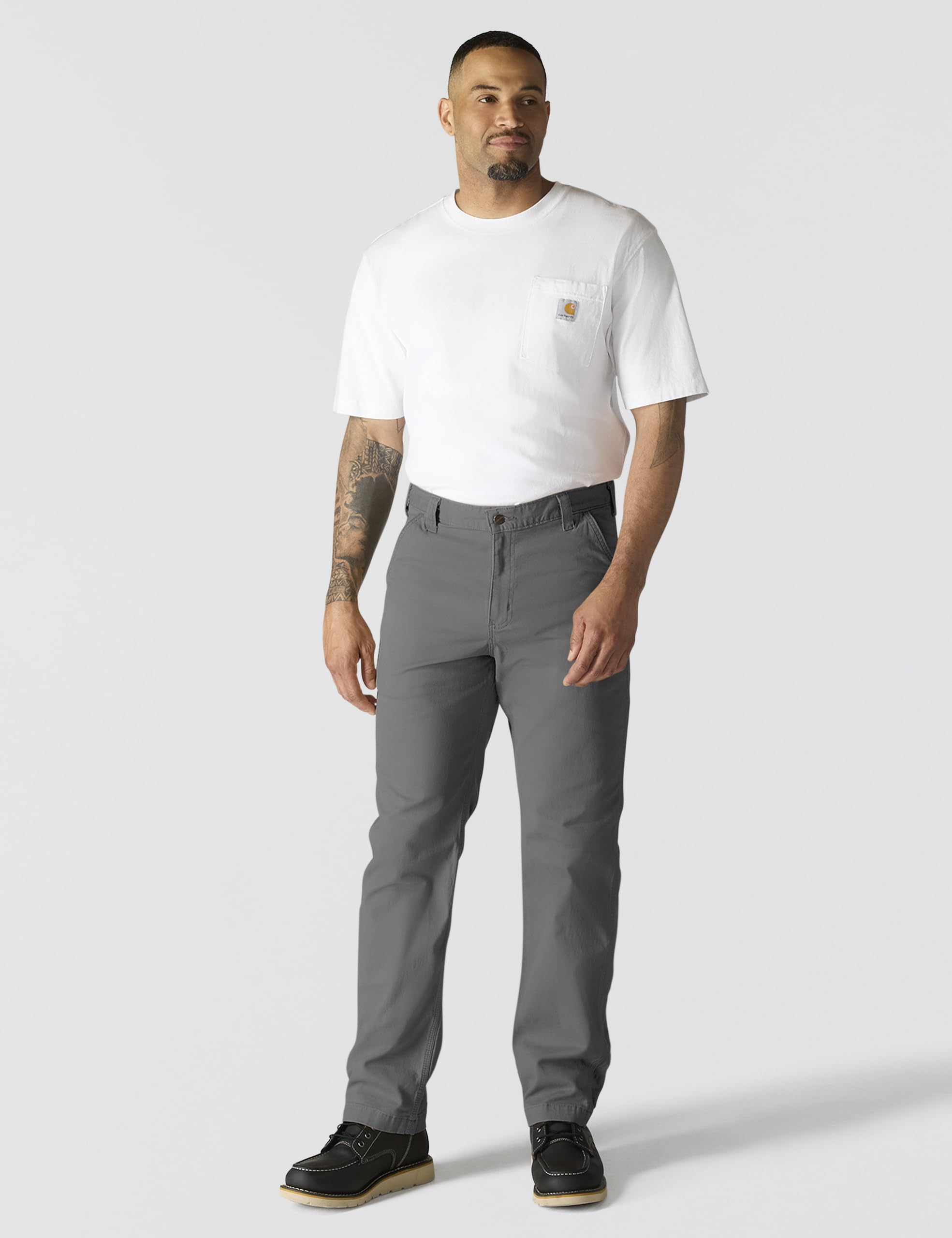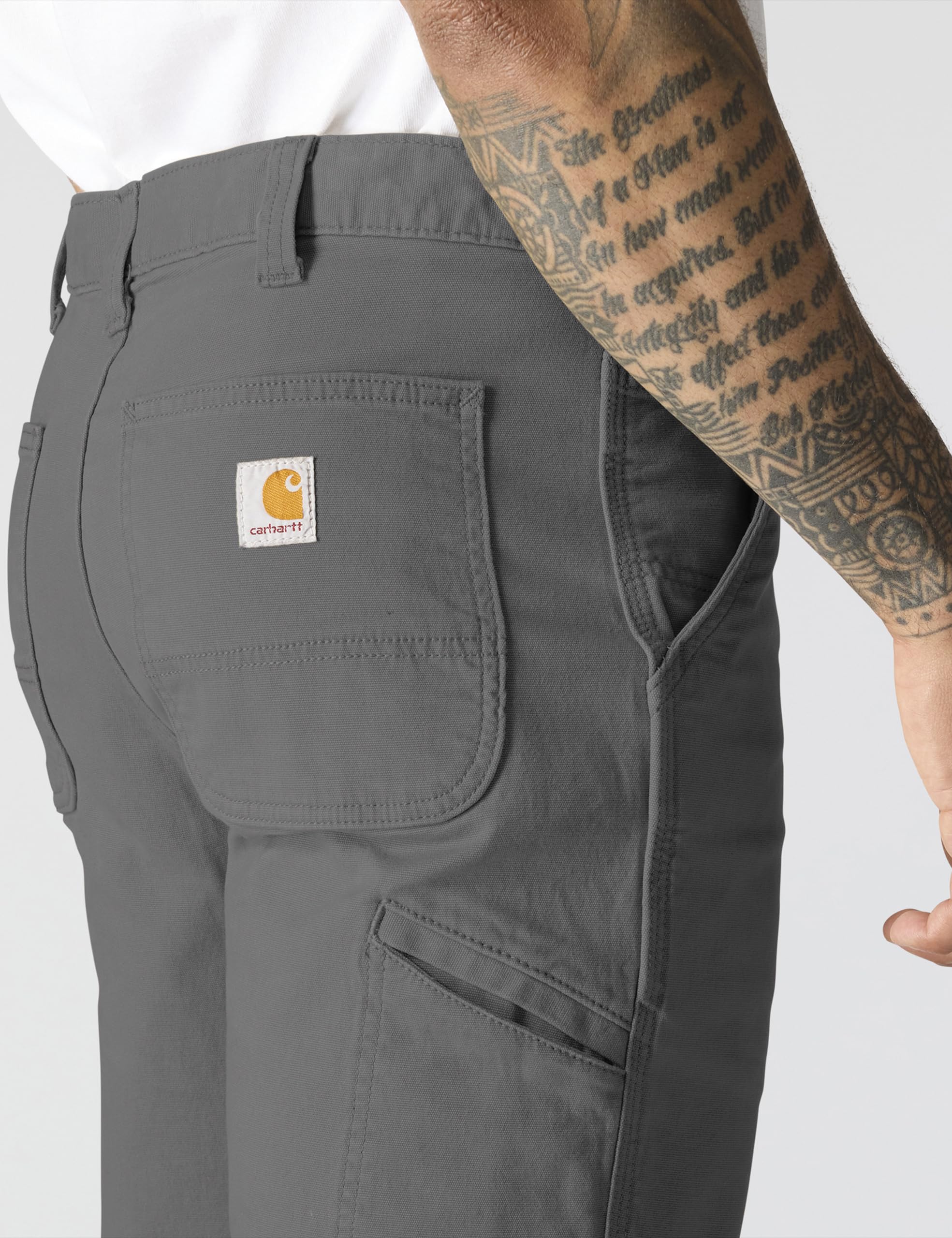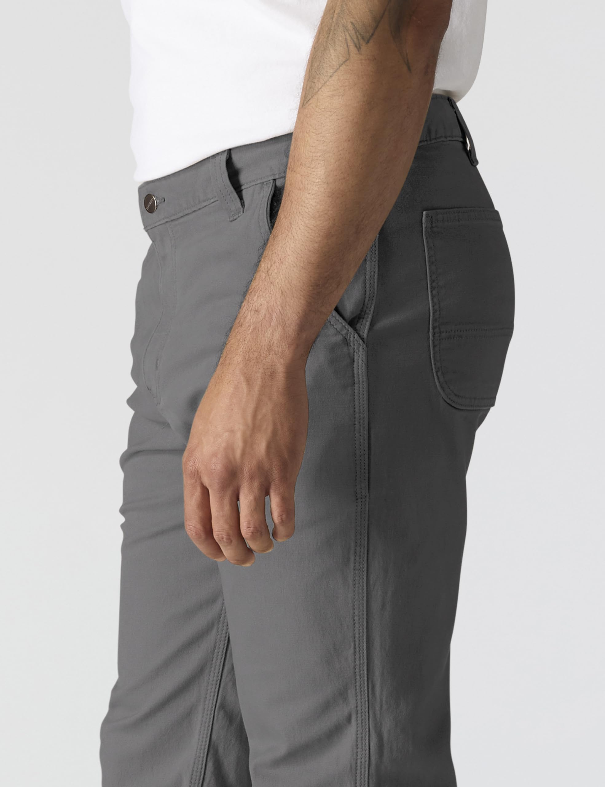 Description This dungaree features a hint of stretch for comfort and a cell phone pocket for functionality. It's made from 8-ounce, 98 percent cotton/2 percent spandex canvas and sits at the waist, has a relaxed seat and thigh, reinforced front slash pocket, belt loops sewn on the seam for strength, right-leg secured cell phone pocket and straight leg opening.