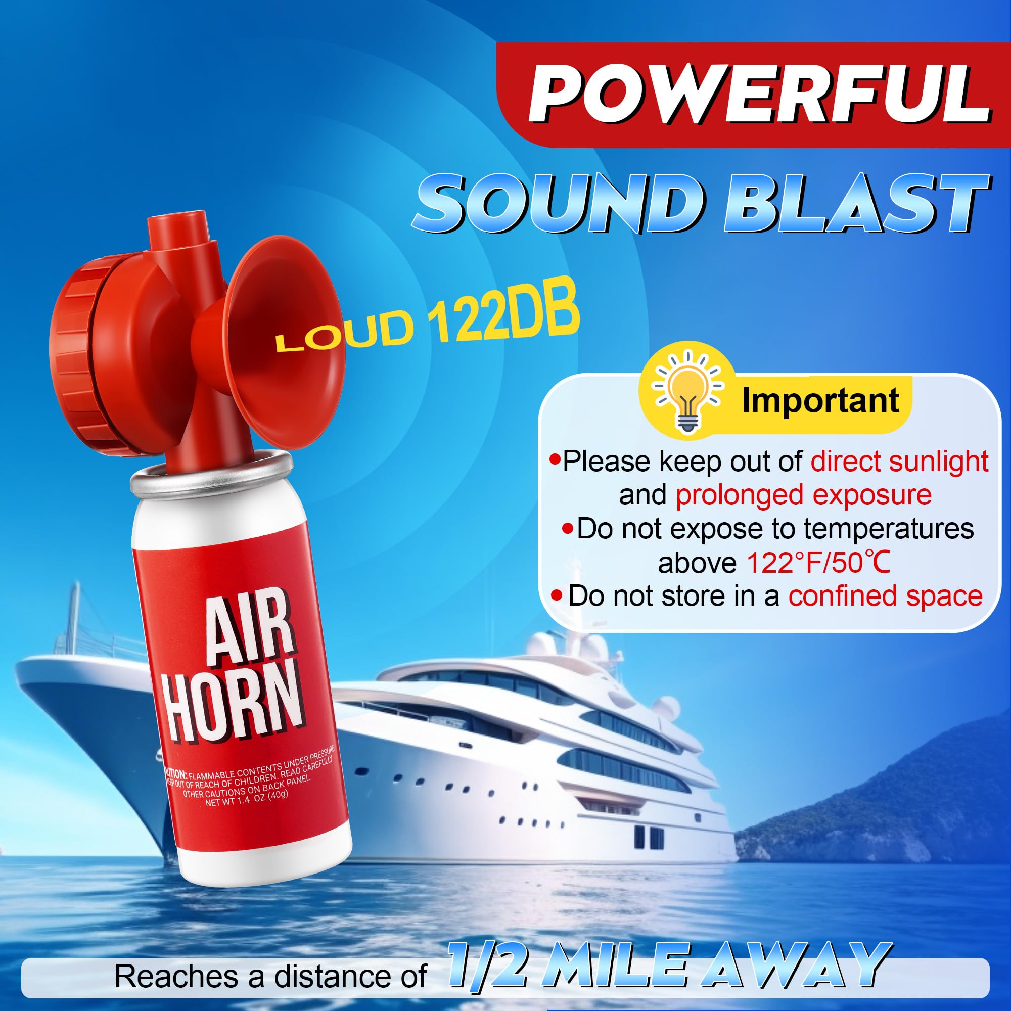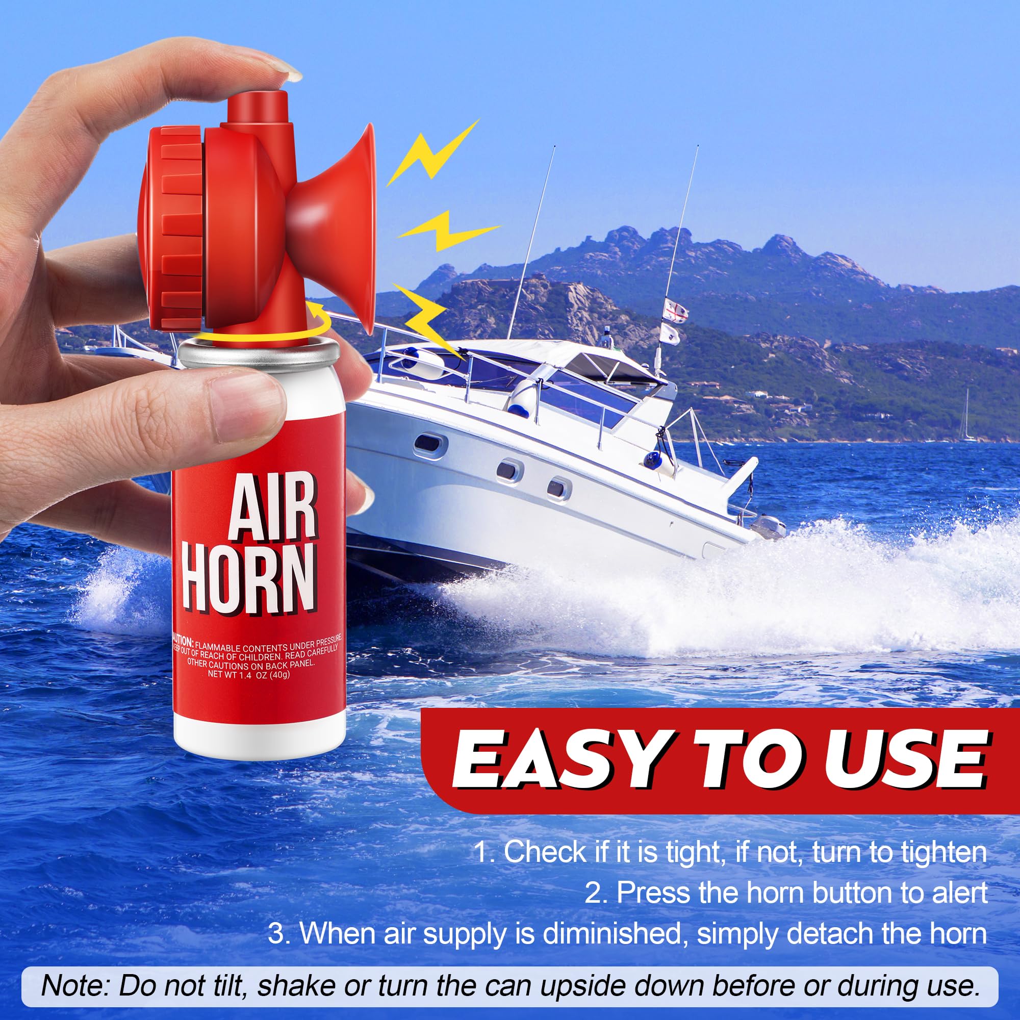 Powerful Sound, Heard from 1/ 2 Mile Away: this boat air horn delivers a very loud, attention grabbing sound from 1/ 2 mile away, ensuring that you can be heard in any situation; It is a must have for every boat emergency kit (Important Note: Do not use at temperatures above 122°F/50°F and exposed to direct sunlight, Do not store in a confined space)