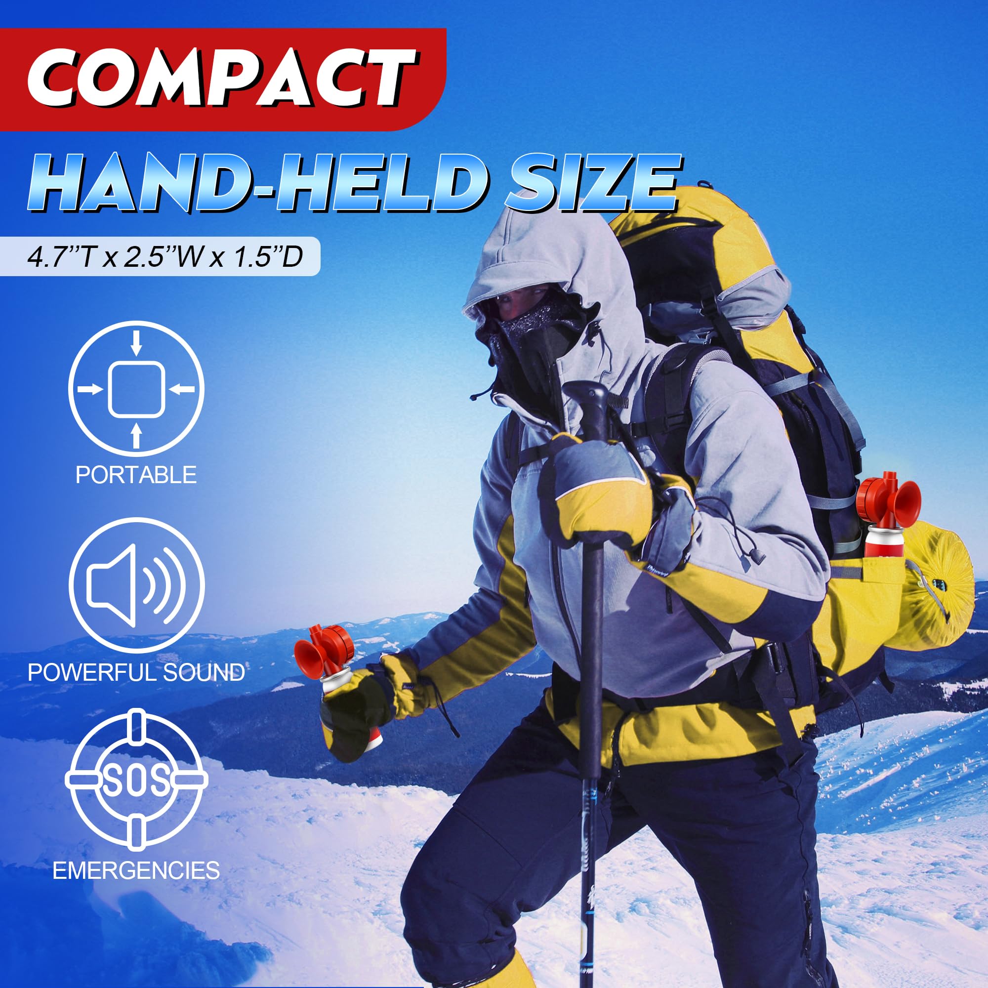 Portable and Easy to Use: weighing only 1.4 ounces, you can take our loud air horn with you wherever you go Its compact size makes it easy to carry and store, about 4.7 x 2.5 x 1.5 inches, ensuring you're always ready for any emergency; It's also easy to use, just press the button to make a loud sound
