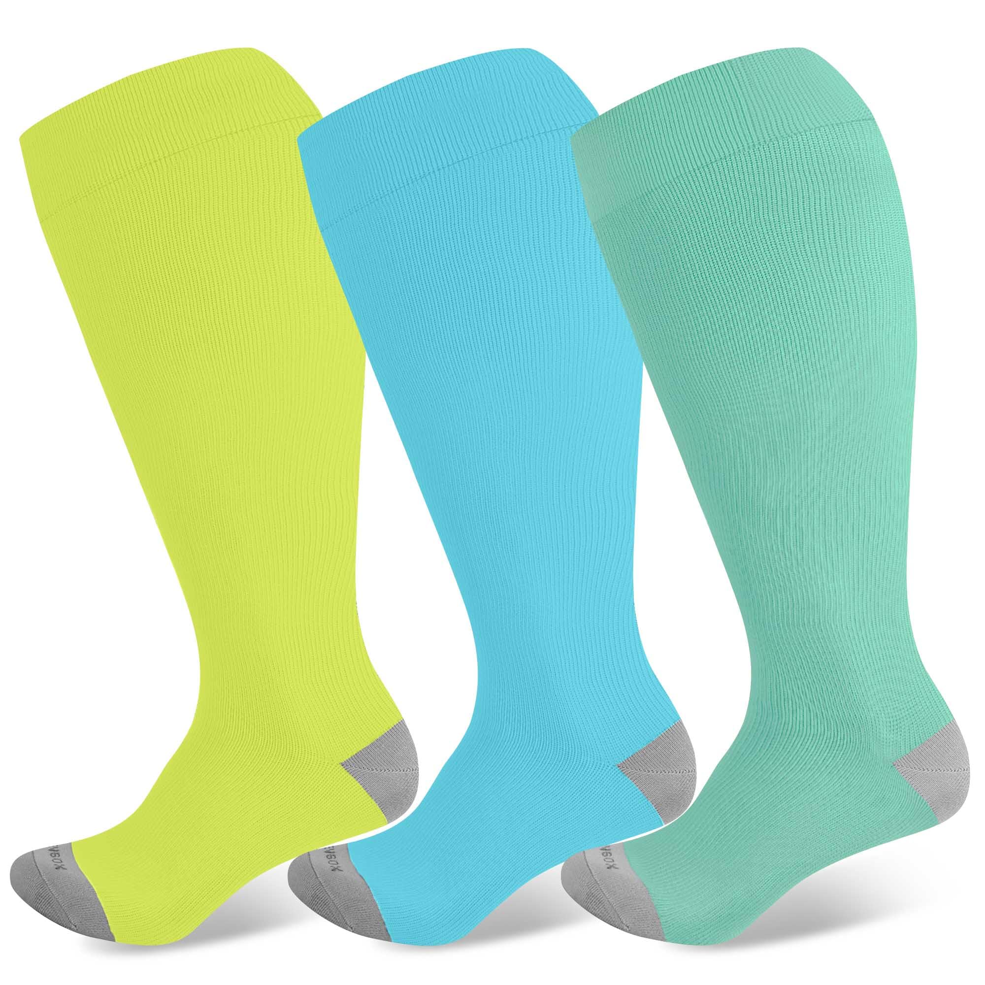 Plus Size Calves - These comfortable permium wide calf compression socks is ready and perfect for men & women, who wears in extra large or plus size. Adopt to 360° seamless woven construction in high quality material of fabric, Nylon 77% and Spandex 23%, these big and tall calf compression socks bring you strong leg support and long lasting graduated compression, as well as ultra comfortable wear of light weight and breathable.