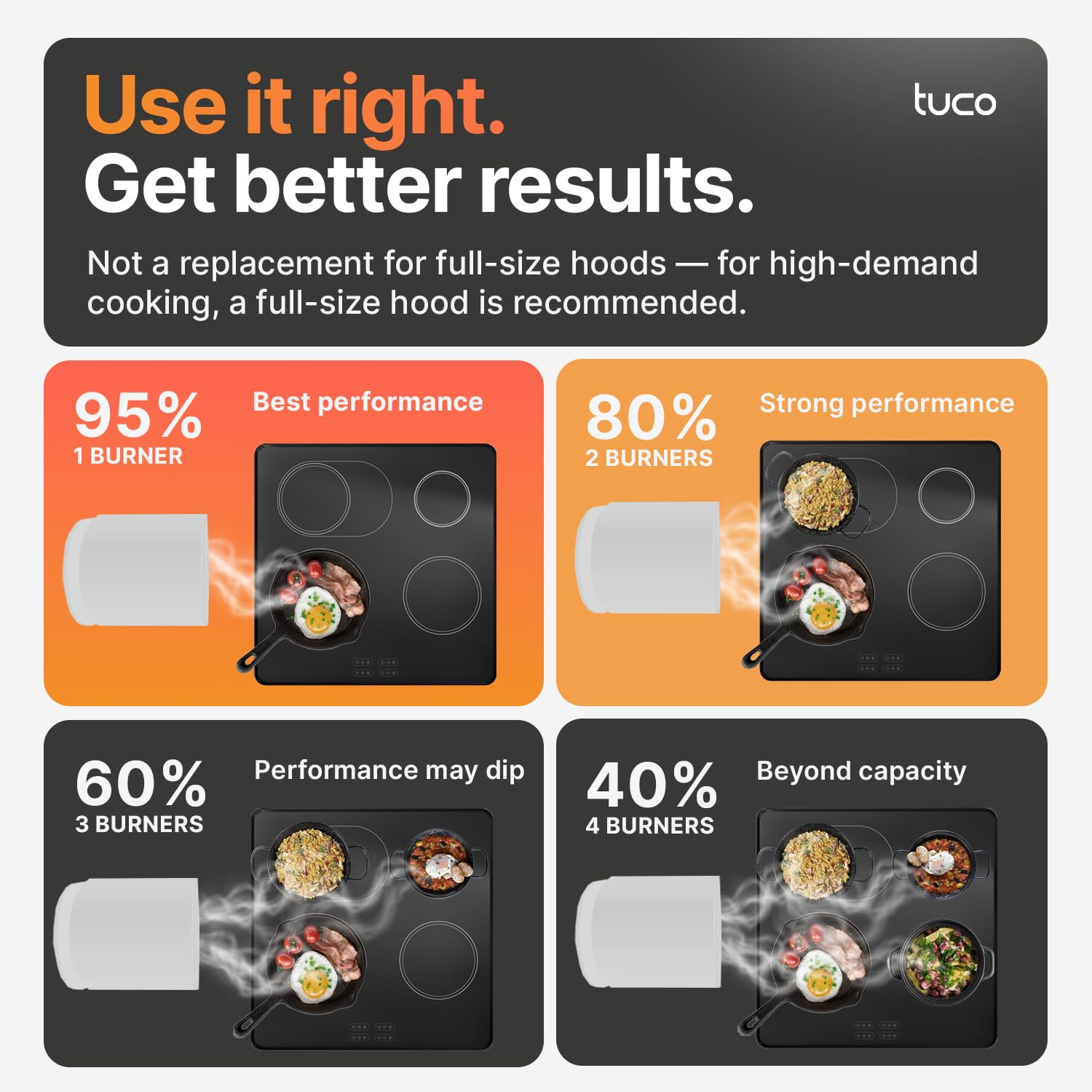 ๐จ SPEED MODE: The TUCO portable range hood features three adjustable speed levels that allow precise adaptation to different cooking modes, saving energy and being environmentally friendly.