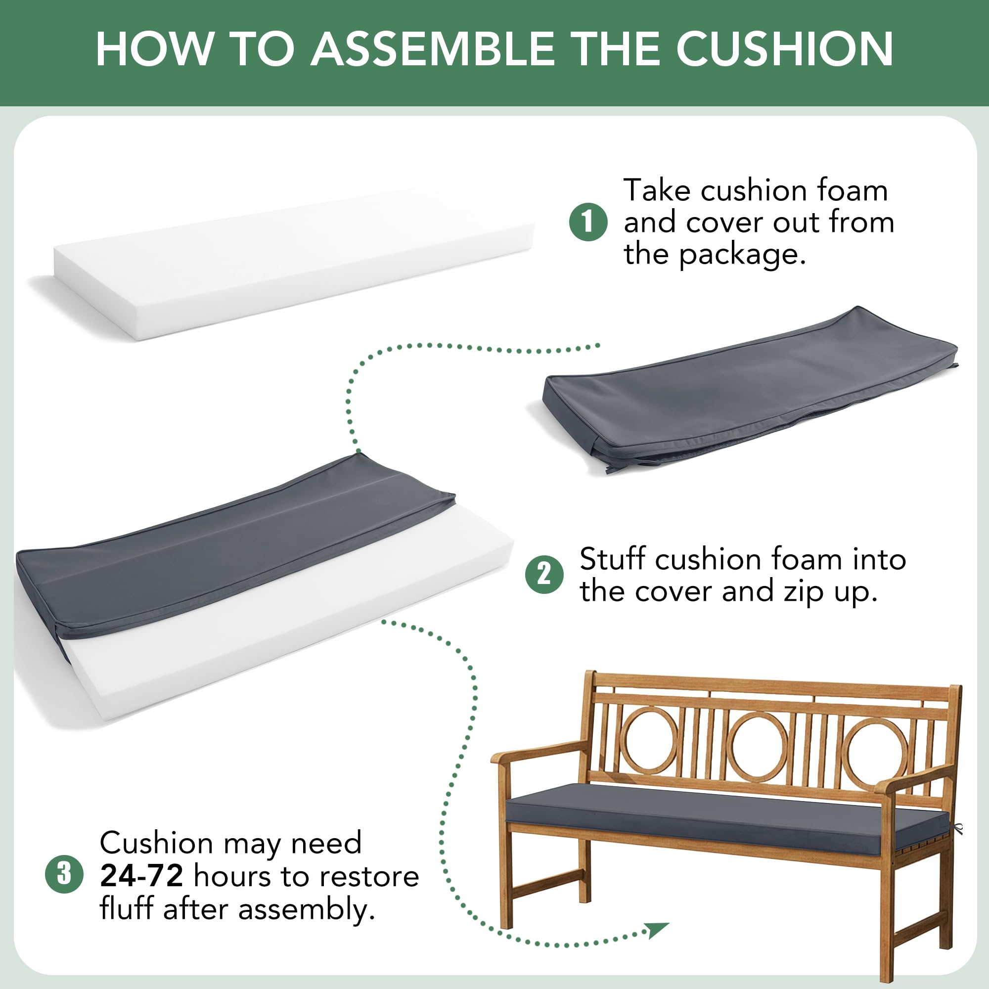Easy to Clean & Convenient Packaging: When your outdoor cushion pad arrives, it will be compressed for shipping. Please allow 1-3 days for it to fully expand and regain its shape. The cushion features a removable cover that is machine washable for easy maintenance.