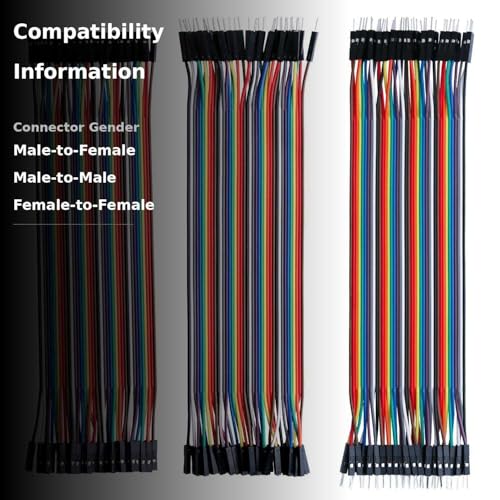 Including 1X 40-pin male to female jumper wires, 1X 40-pin male to male jumper wires, 1x40-pin female to female jumper wires