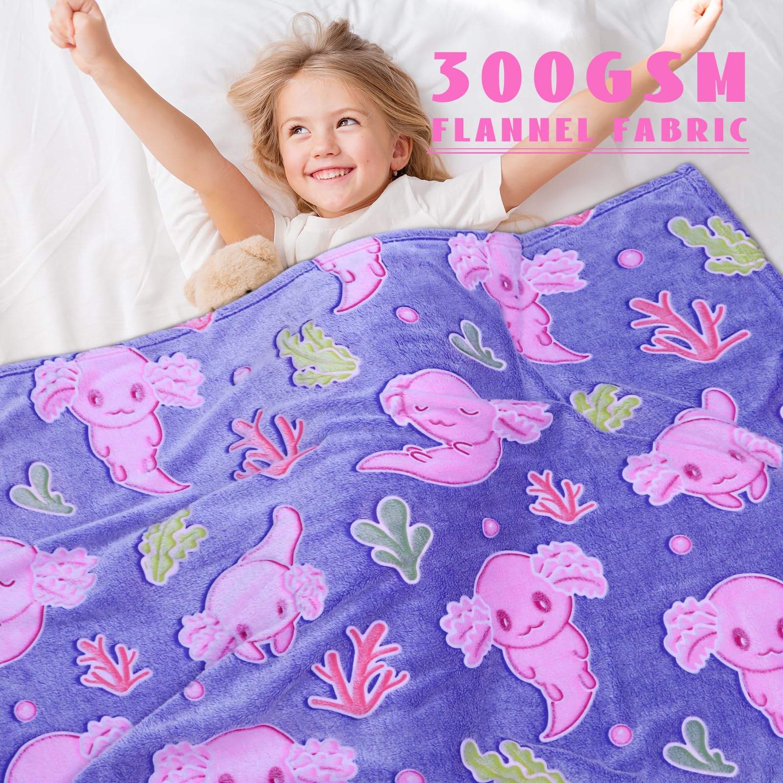 【SOFT AND SKIN-FRIENDLY】 Kids' axolotl throw blanket made of high quality microfiber polyesterthat, which is soft and delicate to the touch, perfect for teen boys, girls or adults with sensitive skin. Soft skin-friendly blanket is suitable for kids age 2,3,4,5,6,7,8,9,10,11,12 years old.
