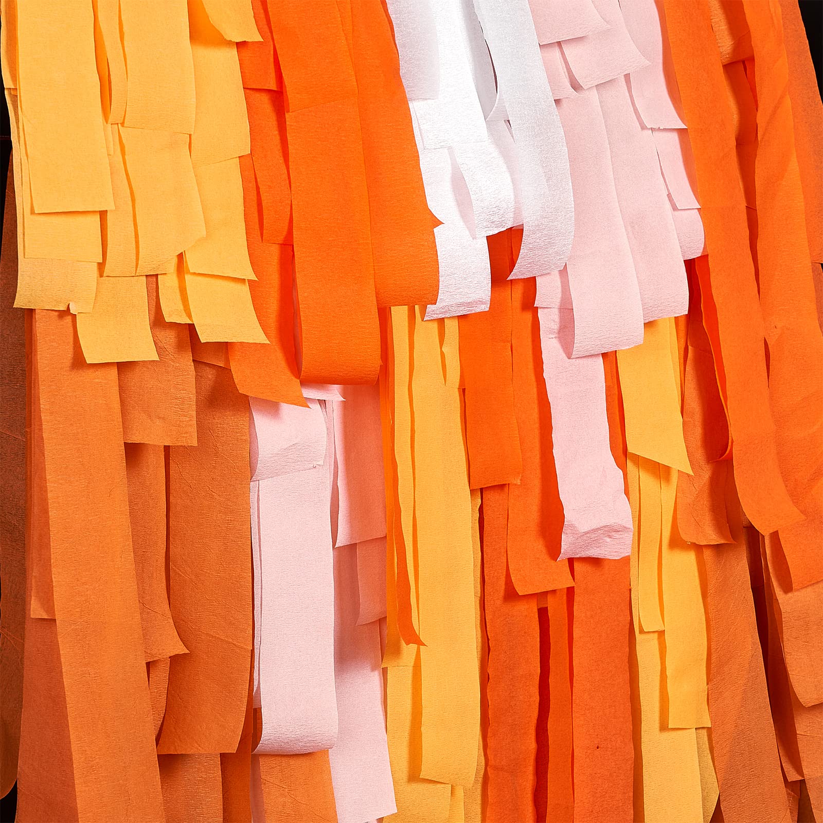Package Included:You will receive 6 precisely rolled party crepe paper in light orange, burnt orange, orange, white and baby pink colors, each roll is 1.8 inch x 82 ft, these crepe paper streamer rolls are enough for your wedding and engagement needs