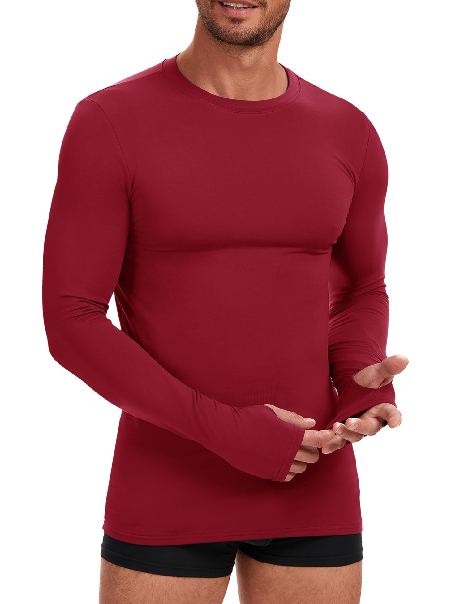 Classic Athletic Cut: Men's base layers shirts sit below your waist, cover your hip. With gentle compression, this mens running tops contour your body, provide the nearest warmth for the cold weather. Order size up for casual wear.