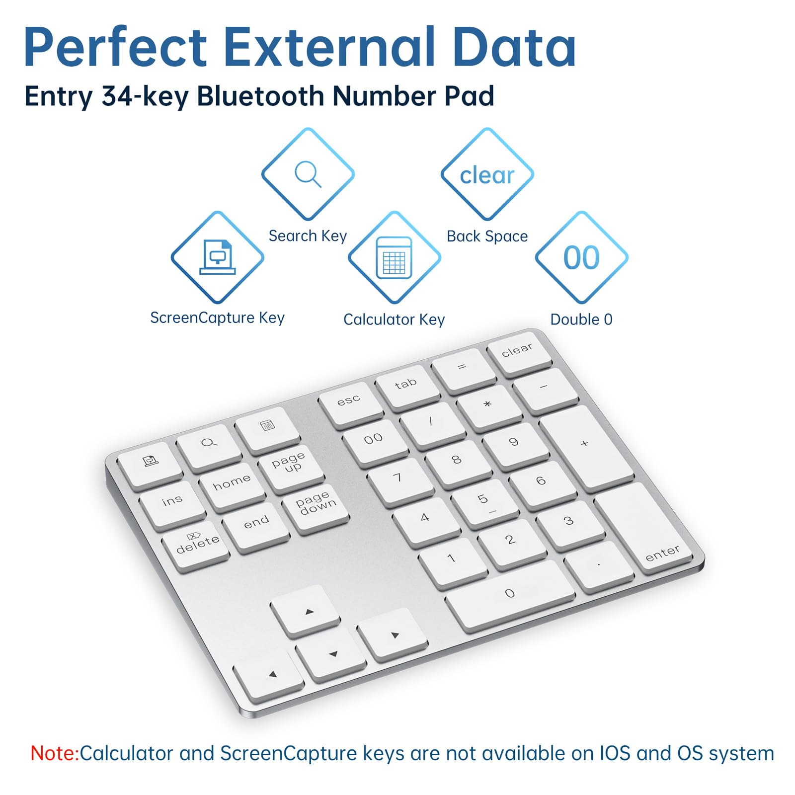 ★【Stable Bluetooth Connection】: Stable Bluetooth Connection, strong Anti-interference ability make the numeric keypad is very easy to pair with your computer, provides you a fast and stable wireless technology lifestyle.【Tip!: For Laptop Desktop PC without Bluetooth function, you need to use third-party Bluetooth adapter (not included) before use 】