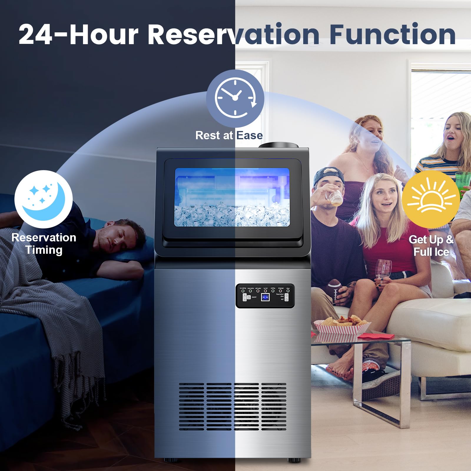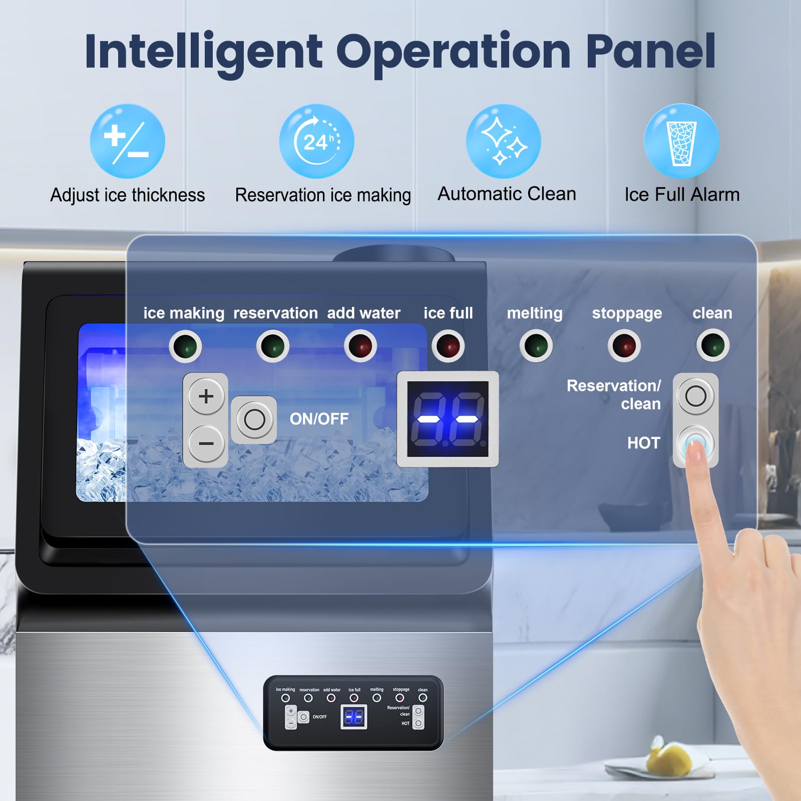 Self-Cleaning Purity – Taste the Difference: Enjoy every sip with confidence. This freestanding ice machine's built-in self-cleaning system and advanced water filter work in tandem to eliminate impurities, odors, and mineral buildup. The result? Ice that's crystal-clear, hygienic, and flavor-enhancing—perfectly complementing every beverage, every time.