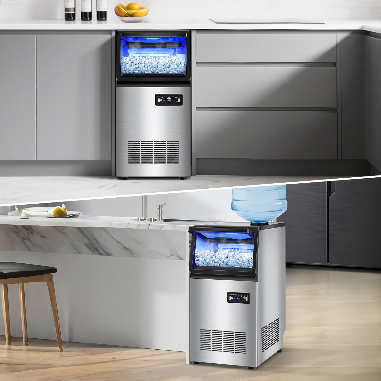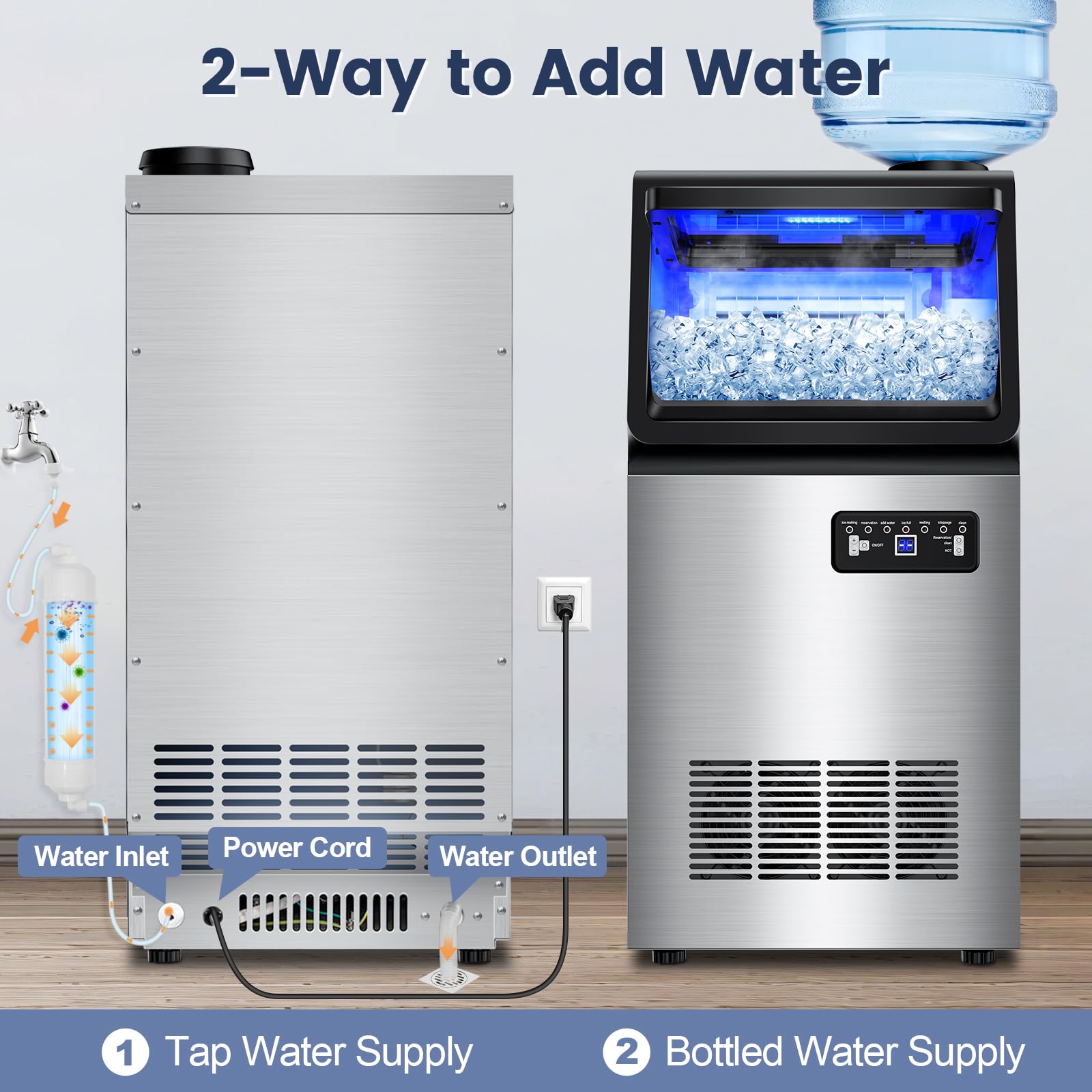 Dual Water Inlet System – Flexible & Hassle-Free: Engineered for maximum convenience, this under counter ice maker offers two water supply options: connect directly to a faucet or use bottled water. No more complicated installations or constant refilling—get reliable, on-demand ice production anywhere from your kitchen to your bustling bar.