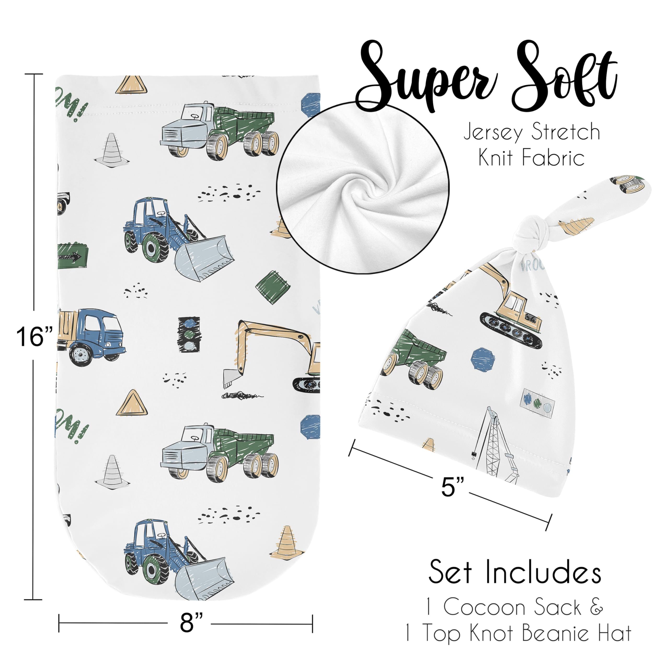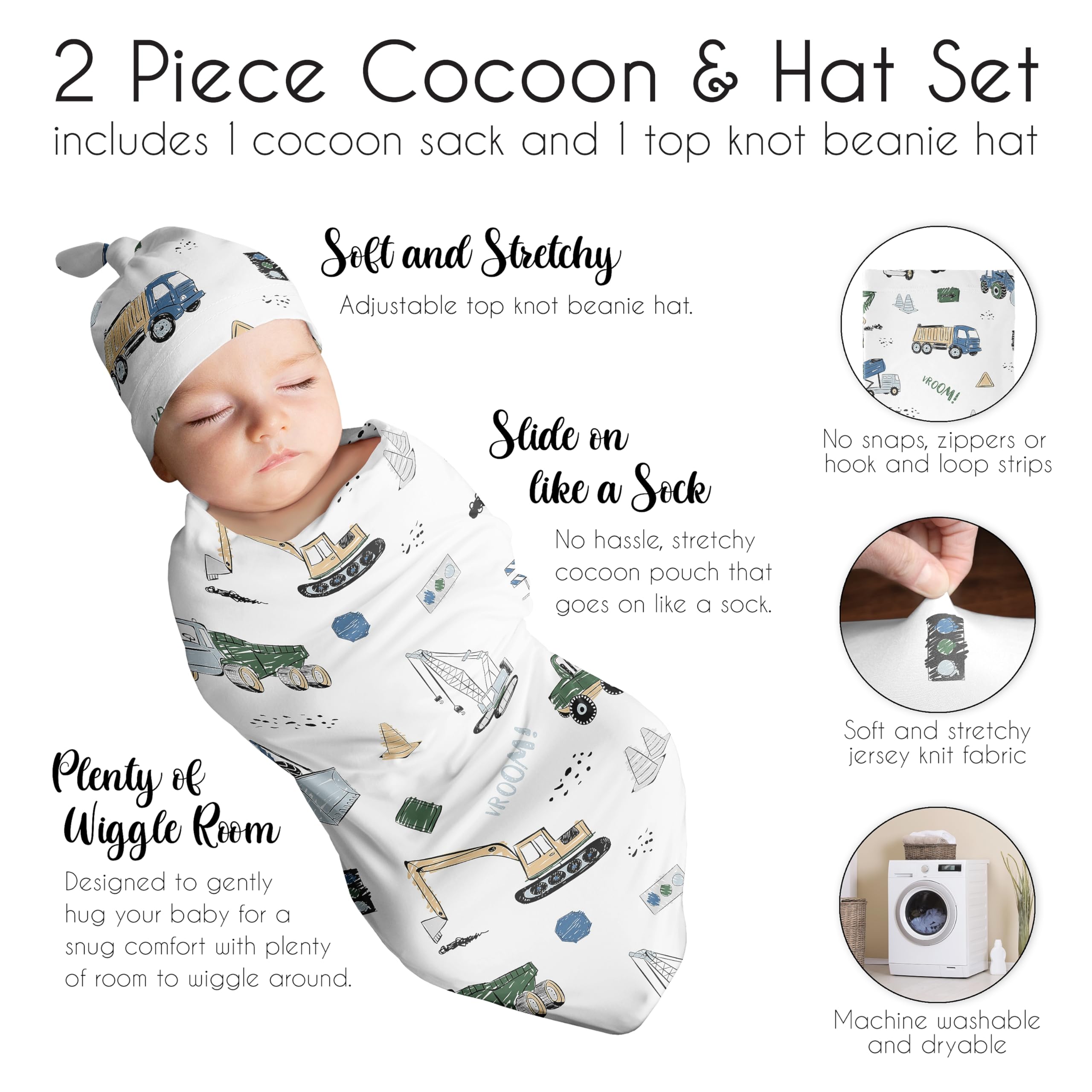 Set Includes (1) Cocoon Swaddle Sack and (1) Top Knot Beanie Hat
