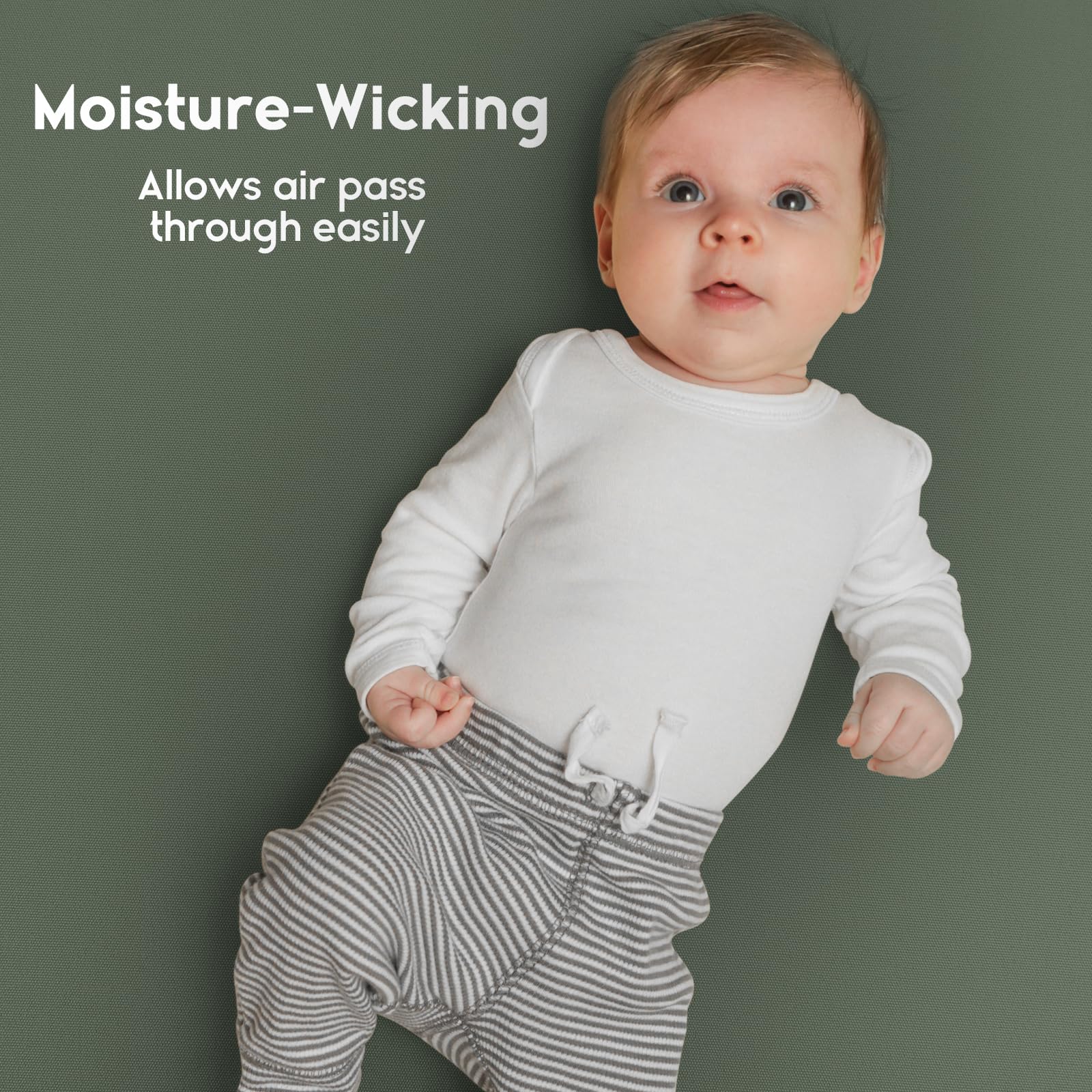 COZY AND BREATHABLE: Made from 95% microfiber & 5% spandex, our pack and play sheets are gentle and safe to touch, does not irritate baby's delicate skin. The breathable fabric also allows air to pass through easily and brings your baby a peaceful dream.