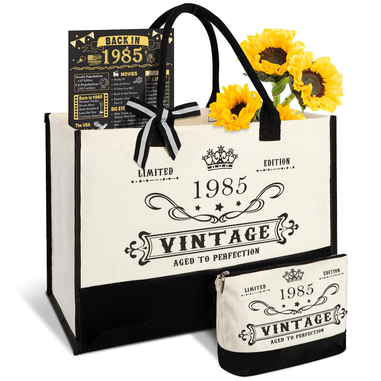41st Birthday Present Idea: The tote bag cover and back in 1985 poster are filled with fun facts and trivia from 1985, making it a great gift idea for women's 41st birthday. The 41st Birthday basket is for women who was born in 1985 and ready to celebrate their 41st birthday. The 41st birthday cards can help you revisit the beautiful memories of the past together, which is a warm gift that can enhance your relationship with her.