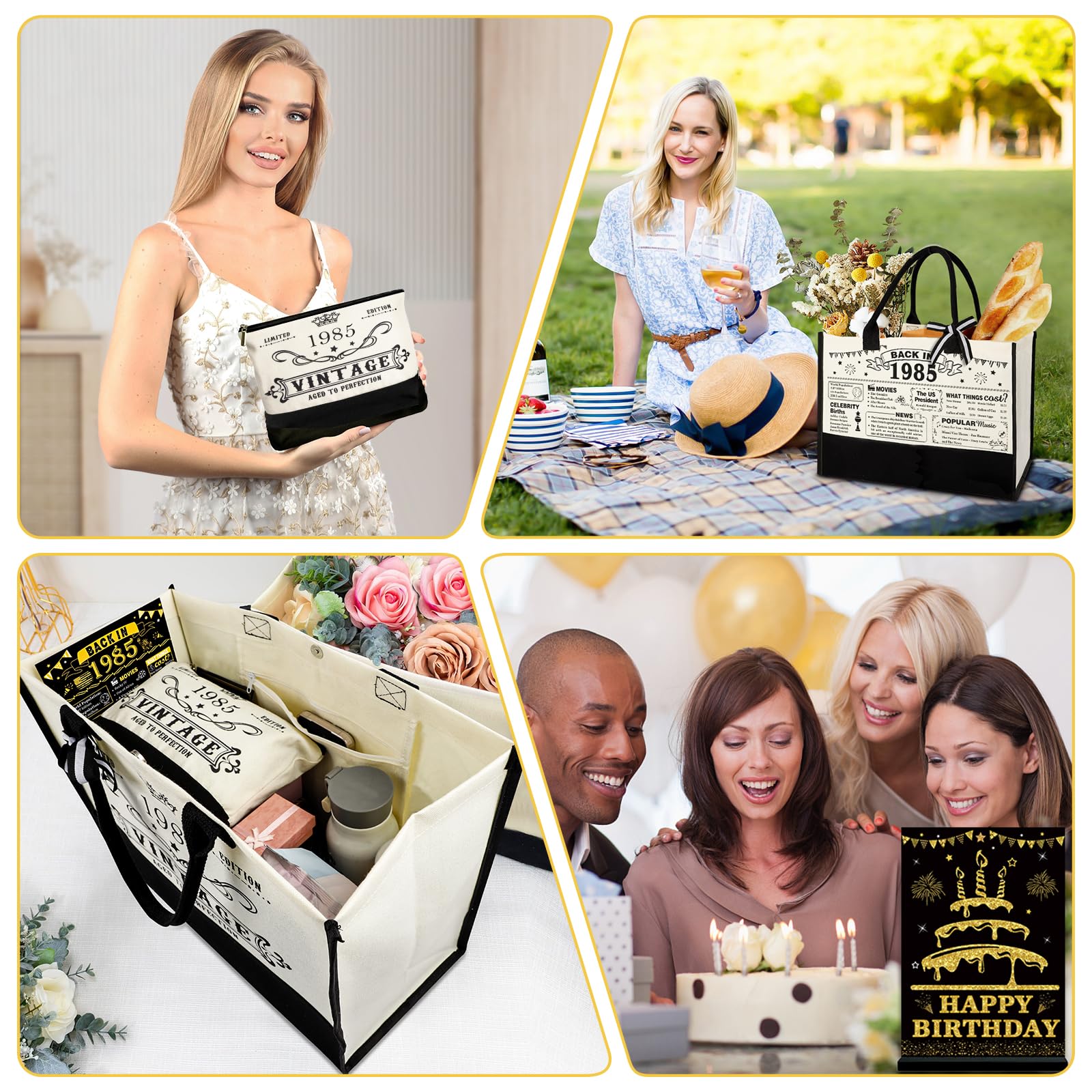 Great Gift for Her 41st Birthday: This gifts set for 41st birthday women contains: 1 X 1985 beach bag, 1 X cosmetic bag, 1 X back in 1985 poster, 1 X greeting card. Unique classy 41st birthday gifts will be a adorable gift for women's 41st birthday. This birthday 41 gifts themed idea makes the perfect choice for putting a smile on her face on their special day.
