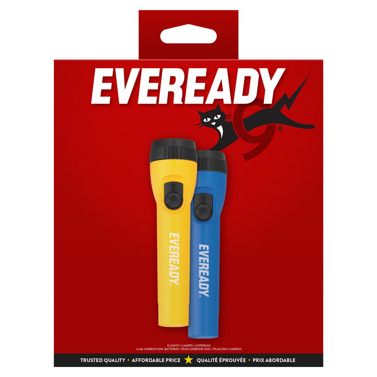 [EMERGENCY FLASHLIGHT]: Prepare for power outages with these eight (8) long-lasting EVEREADY LED Flashlights. Includes sixteen(16) AA batteries for use right out of the box