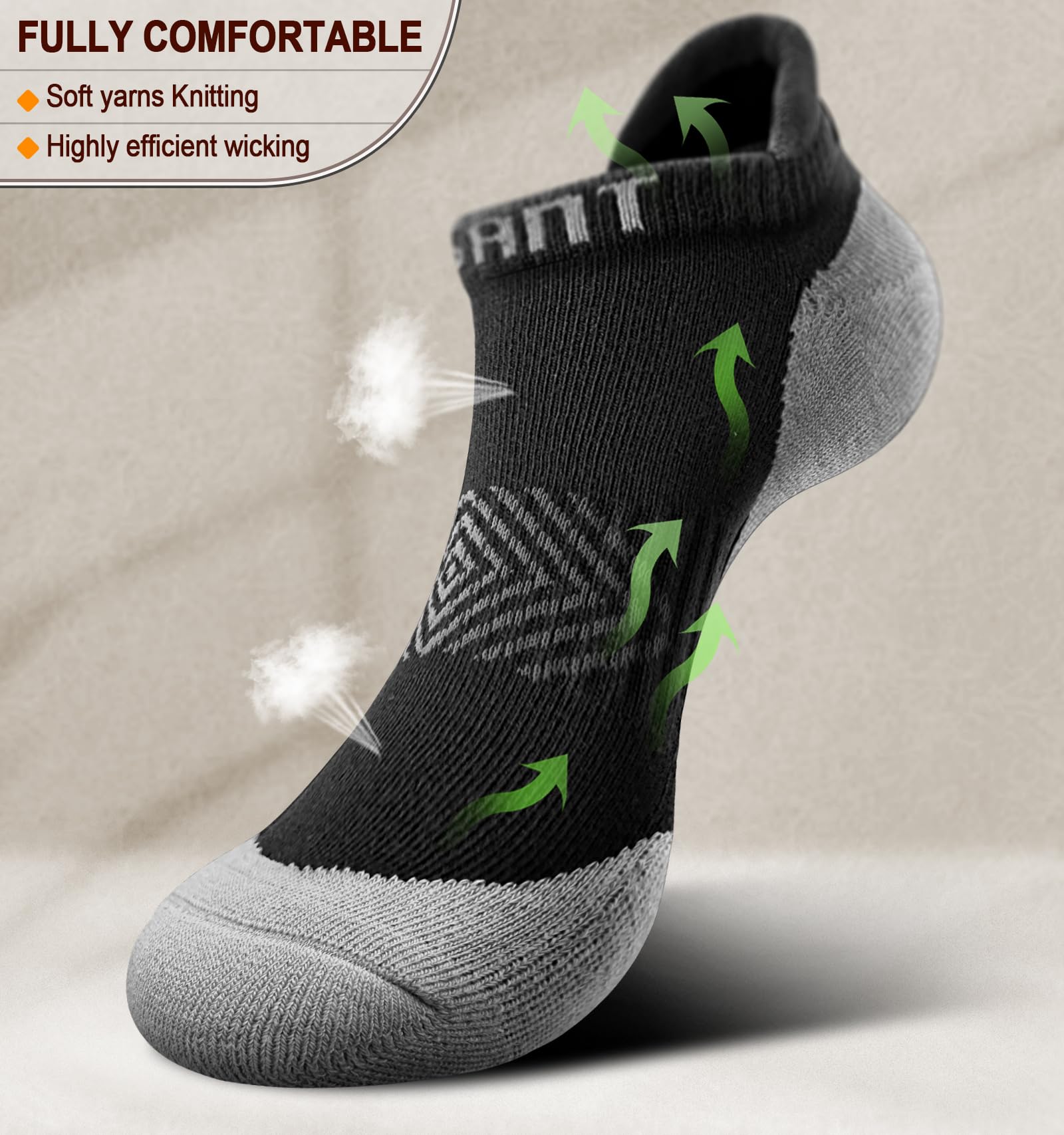 Description BULLIANT Men Ankle Socks,Athletic Running Socks Breathable Wicking For Men Women Cushioned Footbed Arch Supportive