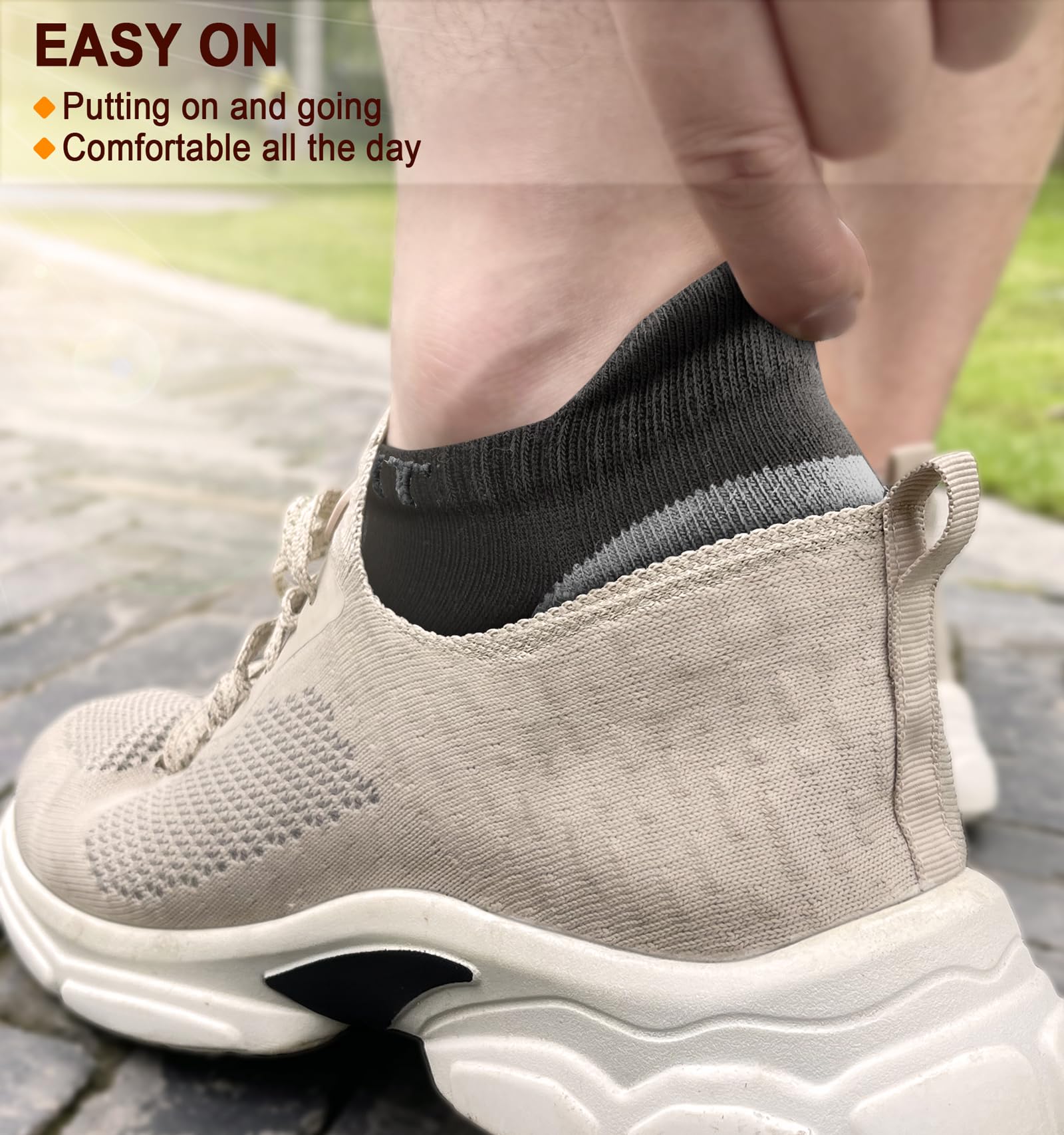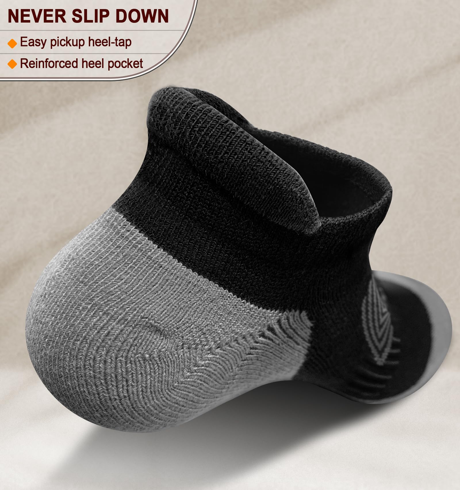 SIMPLE DESIGN--The sleek pull-tab at the heel makes these socks easy to put on and stay in place without slipping. A simple yet functional design for everyday wear;