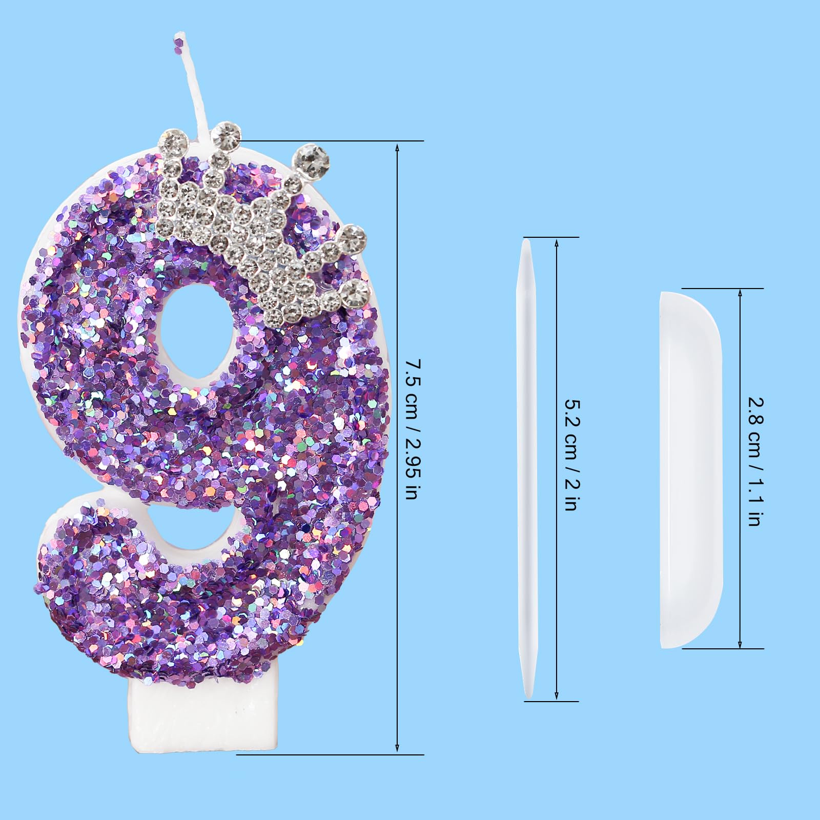 【Exquisite Appearance】This purple digital candle with crown decoration is beautifully crafted, the candle is inlaid with delicate sequins and crown jewelry, adding a touch of nobility and luxury to your party.