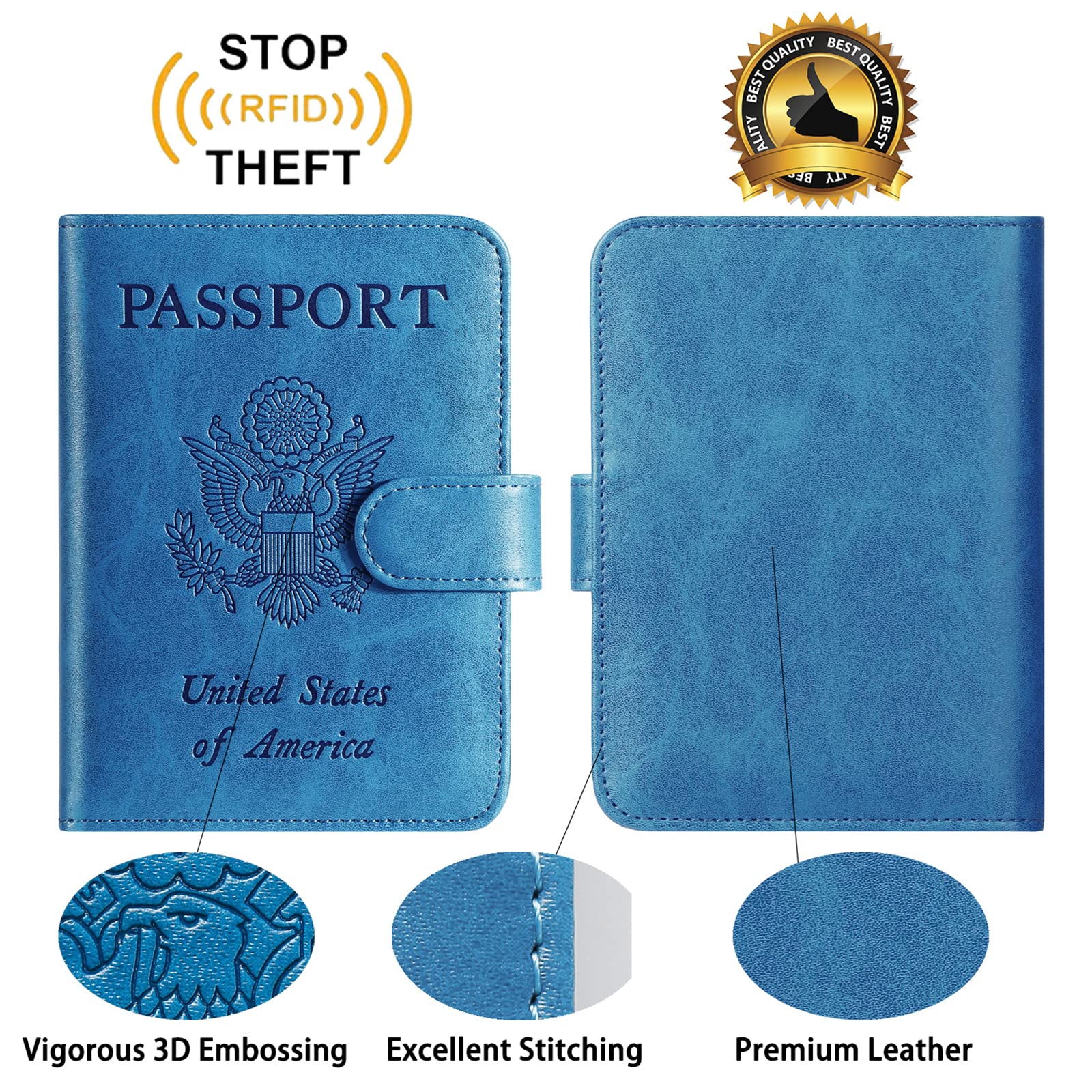 【RFID BLOCKING】 - Our Passport Cover is equipped with advanced RFID BLOCKING SECURE TECHNOLOGY, a stylish metal composite, engineered specifically to block 13.56 MHz or higher RFID signals, such as ID card, Credit card, Debit card, Driver license and keep your personal information securely everywhere.